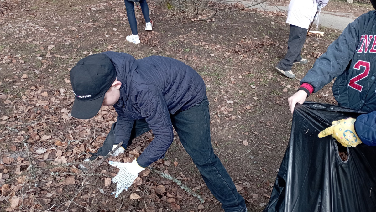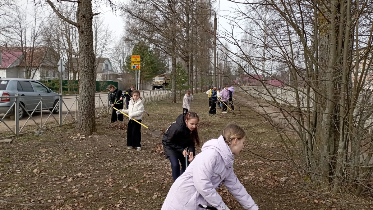 Ребята разделились на группы, каждая из которых отвечала за свой участок. Кто-то собирал мусор, кто-то подметал дорожки.
