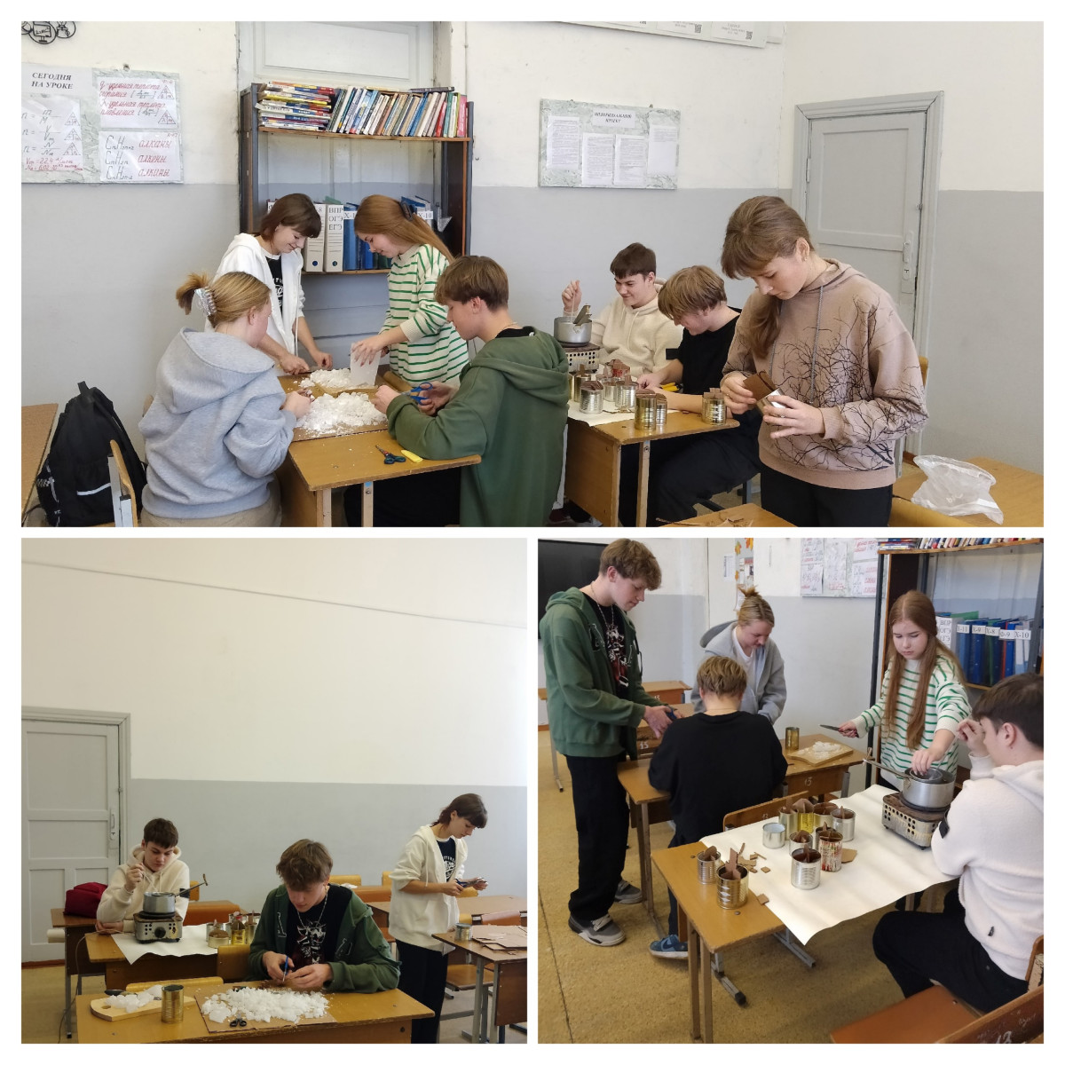 После просмотра фильма ребята предложили сделать окопные свечи. Были подготовлены все необходимые материалы: банки, картон, парафин. У ребят уже есть опыт изготовления свечей. Вот и эта партия с очередным грузом будет доставлена нашим бойцам в зону боевых действий.