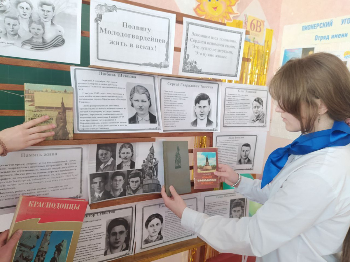 Примечательно, что после просмотра фильма учащиеся рассуждали о подвиге, о таких качествах, как смелость и отвага. Ребят очень заинтересовала история о Молодогвардейцах. Им стало интересно узнать про этих юных героев из Краснодона. Ребятами была проведена исследовательская работа. Они нашли информацию в интернете, разыскали книги про Молодую гвардию и о музее в Краснодоне. В классе был проведен урок памяти, на котором ребята познакомились с подробностями деятельности «Молодой гвардии» и её судьбой, почтили память героев минутой молчания. Затем был оформлен информационный стенд. «Молодая гвардия» — символ сопротивления, история тех, для кого Родина была дороже жизни. Комсомольцы-подпольщики из Краснодона были казнены фашистскими оккупантами. Но молодогвардейцы остались рядом с нами — в книгах, легендах, кинофильмах. Это люди, на которых стоит равняться.