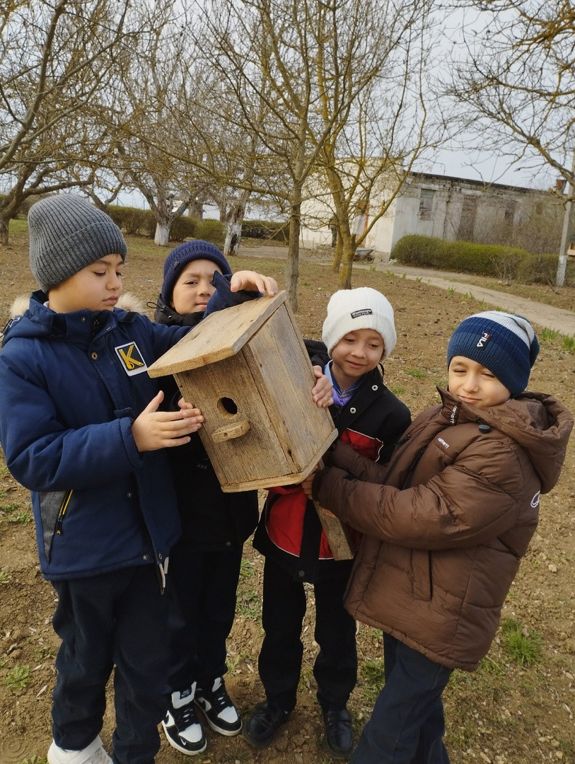 Зимой дети подкармливали птиц. С приходом весны Беленький Кирилл с папой сделали скворечник и прикрепили в школьном саду напротив окон нашего класса. Мы очень хотим ,чтобы там поселились птицы. А вдруг к нам прилетит волшебная «Жар-птица». Остальные дети нарисовали своих сказочных друзей, которые всегда приходят к ним в нужную минуту.