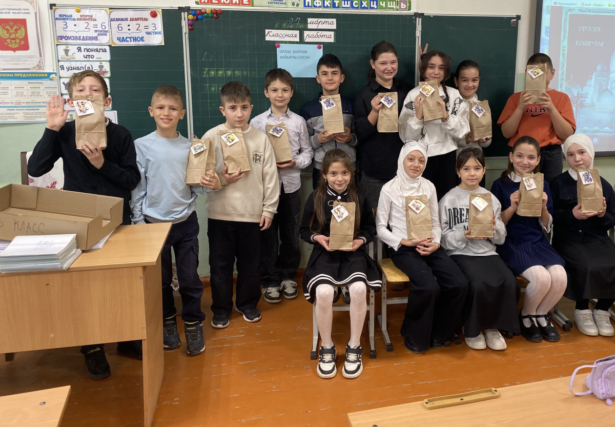 В марте в рамках Всероссийского проекта «Реализация социальных практик на основе киноуроков в воспитательной системе школы» ученики 4-В класса посмотрели фильм « 8 марта». Этот фильм раскрывает важное качество – «наблюдательность» и «внимательность». Сюжет фильма очень растрогал учеников в классе. После просмотра фильма ребята долго обсуждали эти понятия. В ходе обсуждения ребята пришли к мнению, что очень важно проявлять внимание к окружающим людям. Своими поступками, приносить радость и помощь больным и нуждающимся людям. Месяц март ,это месяц такого праздника , как Международный женский день . Ребята решили посвятить свою практику этому дню и быть внимательными к родным и близким .Ребята создали настенную газету к 8 марта. Своими руками сделали аппликации и поделки цветов, которые подарили мамам, бабушкам, учителям и девочкам в классе. Приняли участие в школьном концерте. Так же в преддверии праздника Ураза байрам, сделали поздравительные открытки, которыми поздравили родных, близких. Ребята были внимательными к окружающим людям, к родным и близким. Они рассказали, как было им приятно дарить подарки, видеть радость в глазах и улыбку на лицах пожилых людей.