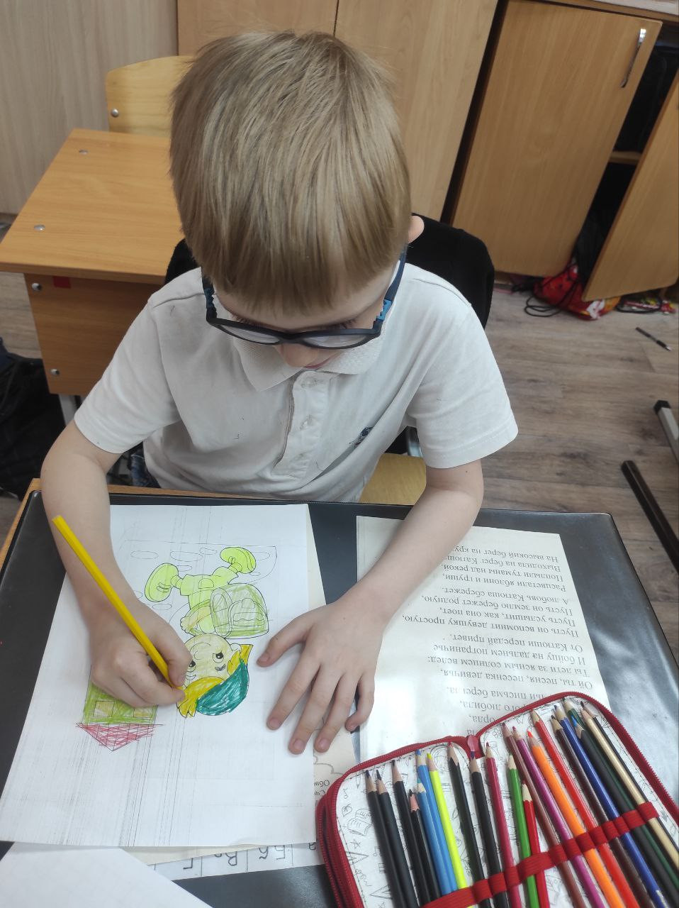 В рамках проекта детям показан фильм "Когда небо улыбается". Прошло обсуждение фильма, высказывания и оценка положительного вывода. В качестве социальной практики дети с инвалидностью по зрению нарисовали, или раскрасили рисунки по теме. Устроили в классе выставку этих рисунков.