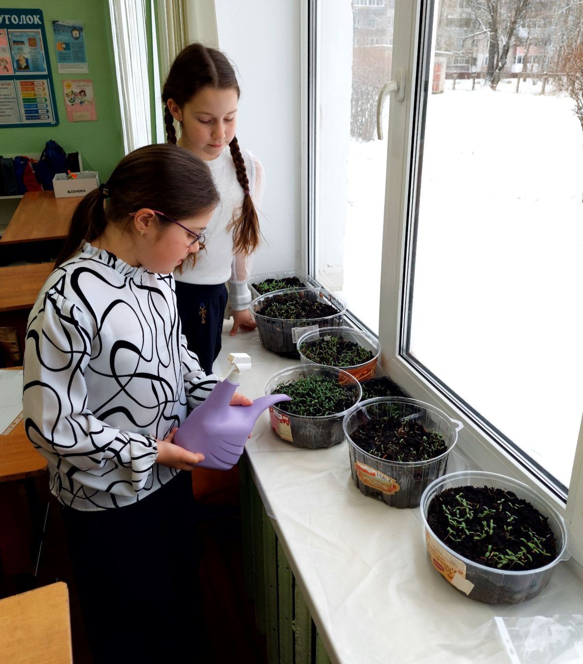 Родители принесли землю, ребята высеяли семена в контейнеры. А весной наши цветы посадят старшеклассники на клумбы около школы.