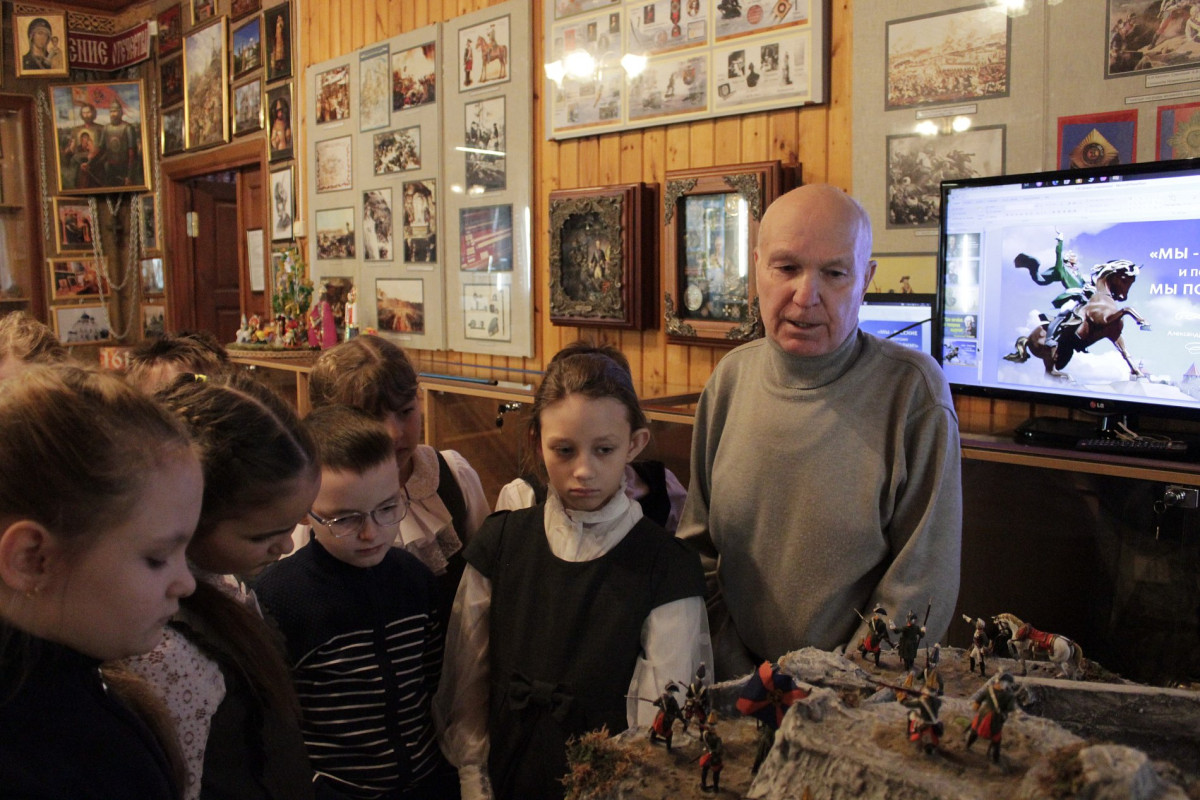 В храме школьники узнали об истории явления чудотворной иконы и смогли приложиться к святыне. Затем они посетили музей, расположенный в Церковно-археологической палате. Уже у входа их встретила атмосфера суворовской эпохи: солдат на посту, пушка, воссозданная по старинным чертежам, и шлагбаум.