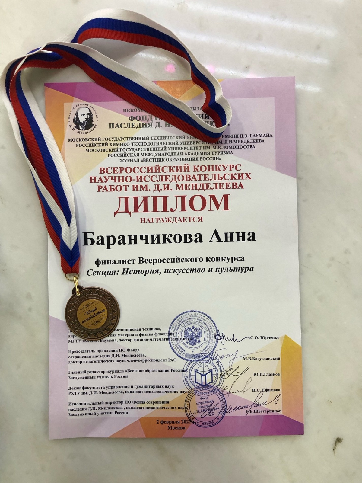 Собрав воедино услышанное и пережитое, Анна создала исследовательскую работу, посвященную героям СВО. Ее выступление перед классом и всей школой никого не оставило равнодушным. Проект получился настолько сильным и искренним, что Анна была приглашена для участия во Всероссийском конкурсе исследовательских работ имени Д.И. Менделеева, на котором она поделилась с большой аудиторией о герое СВО.