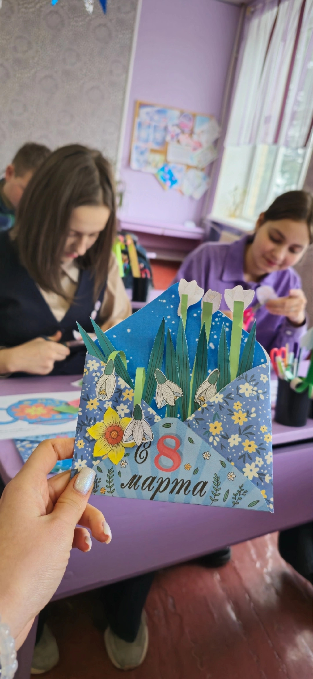Поэтому ребятами было предложено сделать открытки и поздравить с праздником 🥳 не только близких, но и окружающих людей.