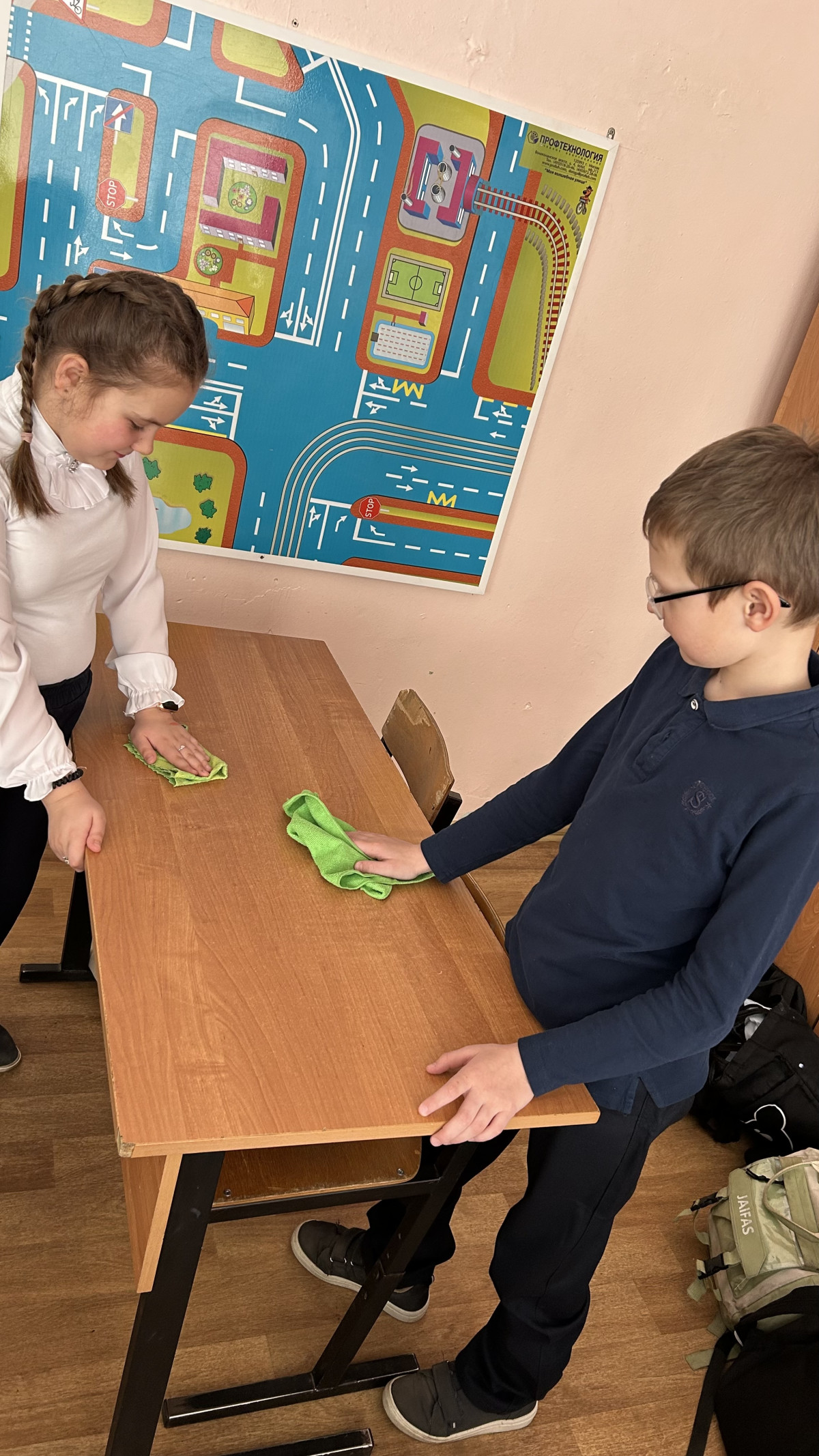 А в рамках доброе дело ребята решили помочь нашему техперсоналу и убраться в классе. Так приятно быть полезным в силу своего возраста и возможностей.