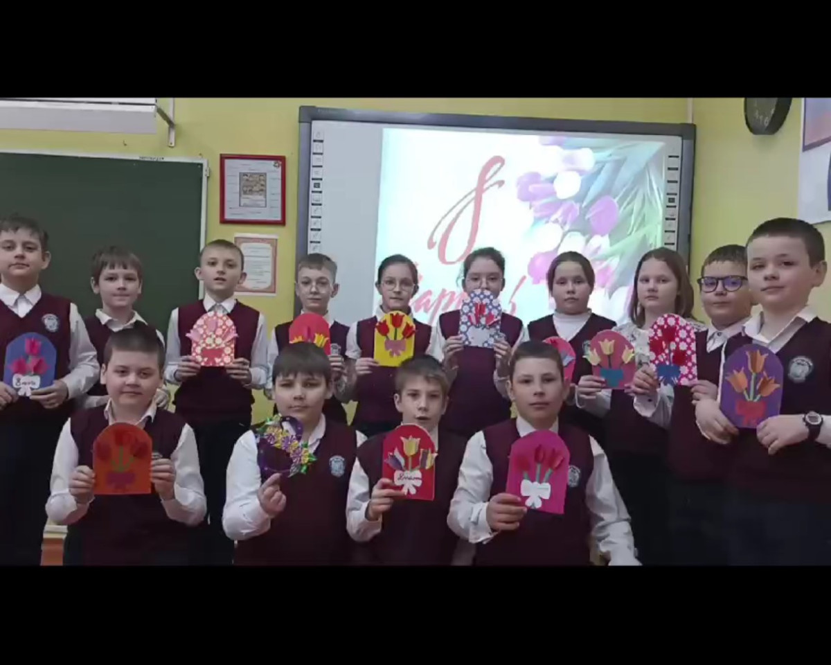 В рамках реализации Всероссийского проекта «Киноуроки в школах России» учащиеся 3 класса посмотрели фильм «8 марта». После завершения просмотра прошло обсуждение фильма. Главная цель фильма – важность внимательного отношения к близким и окружающим людям и готовность в любую минуту оказать помощь. Учащиеся пришли к заключению, что сплоченность и взаимовыручка позволяют преодолеть любые испытания и проблемы в жизни. Ребята высказали свое мнение о том, что в любых ситуациях необходимо сохранять оптимизм, поддерживать друг друга и стремиться к совершению добрых поступков. Только совместными усилиями можно справиться с жизненными сложностями и добиться успеха в жизни. Ученики подготовили для своих мам праздничное поздравление и поделки, чем очень их порадовали.