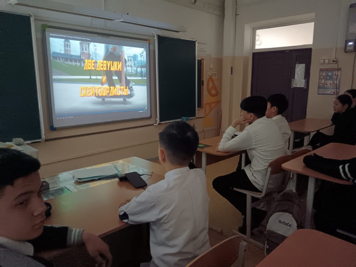 В рамках Всероссийского проекта «Киноуроки в школах России» в феврале в 8 классе состоялся просмотр доброго, душевного фильма «Две девушки и скейтбордисты», раскрывающий такое духовно-нравственное качество, как великодушие.