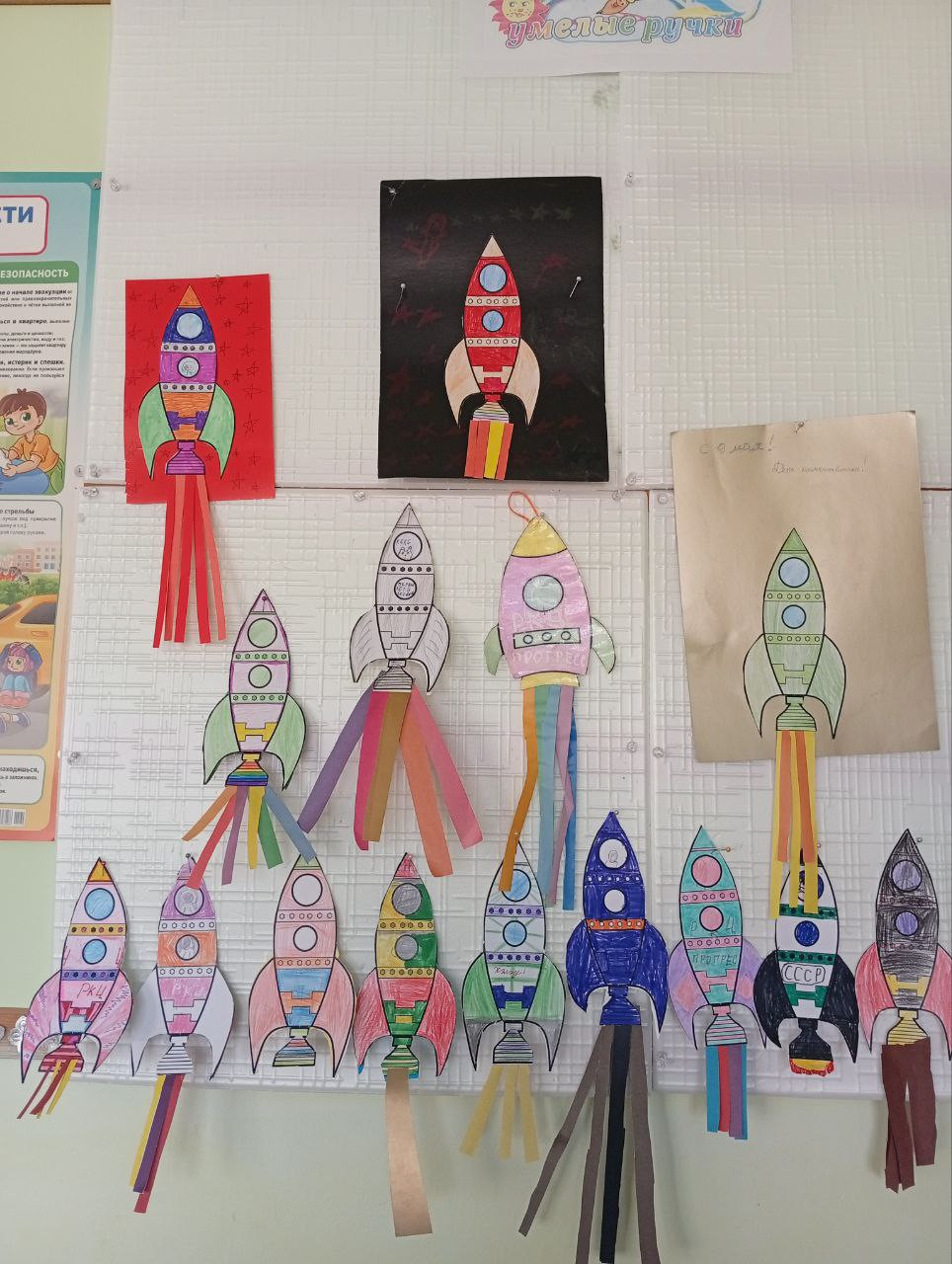 Во 2 Г классе проведена неделя космонавтики. Дети совместно с родителями подготовили много интересной информации о космосе. На внеурочной деятельности поиграли в викторину "Космос в лицах", посмотрели фильм "ЭРА". Смастерили замечательные ракеты, оформили информационный стенд ко Дню Космонавтики. Были привлечены наставники из старших классов. Старшие ребята поиграли с младшими и организовали конкурс рисунков.