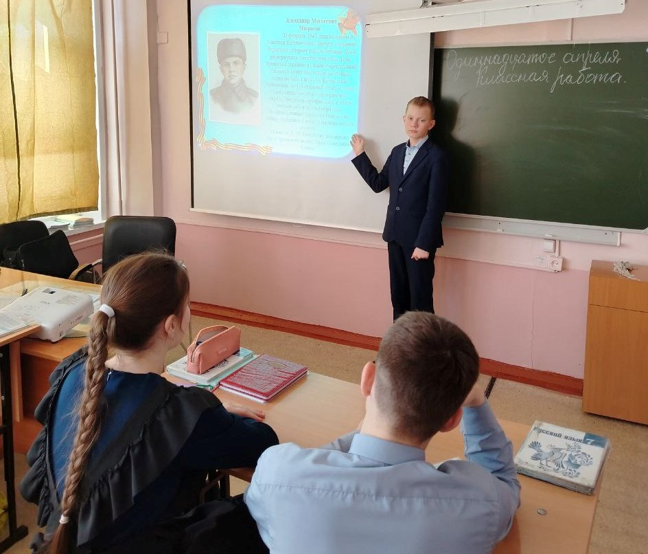 В качестве социальной практики по результату просмотра фильма «Василёк» обучающиеся 7 класса организовали мероприятие «Час памяти», на котором рассказывали о героях- участников Великой Отечественной войны. Обучающее осознали, что защитники своей страны в годы Великой Отечественной войны являются настоящими героями. У ребят выражалось чувство гордости за них.