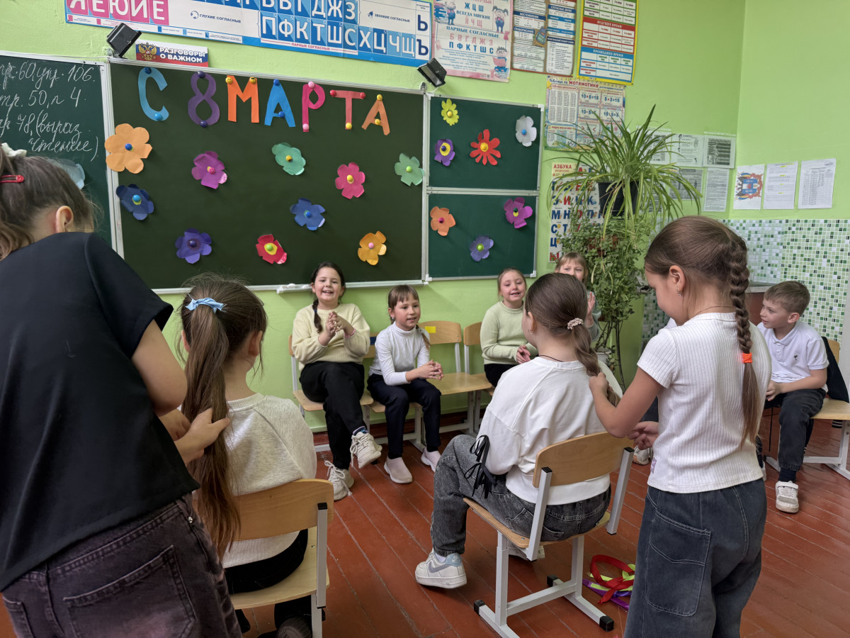К 8 марта , с ребятами провели отличный концерт, подарили подарки девочкам , и в завершение праздника- накрыли стол.