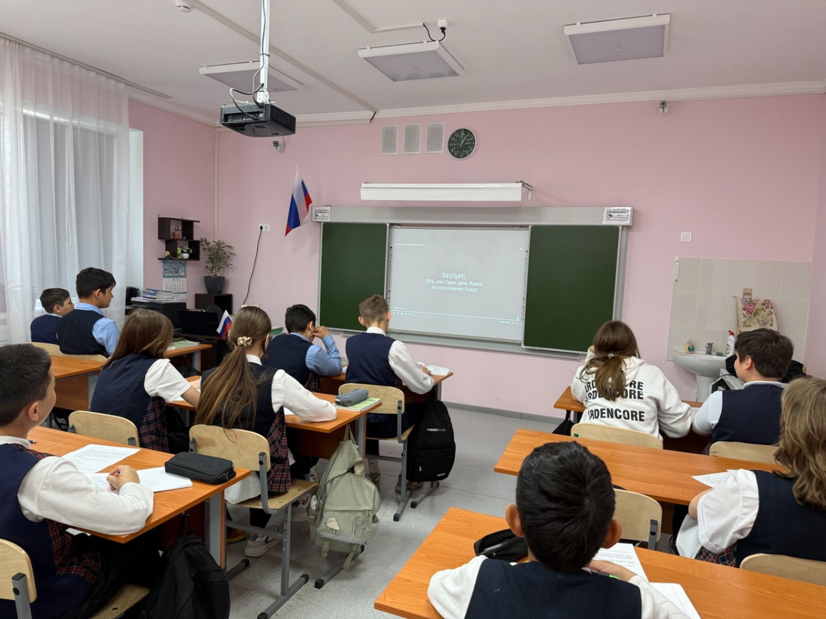 8 апреля ученики 6В класса посмотрели фильм "809, или Один день Вовки во исполнение Указа". Этот фильм про человеческие качества, про их важность и значимость. Кинопоказ был приурочен к общешкольному субботнику, который прошел в этот день. После просмотра ребята обсудили увиденное.