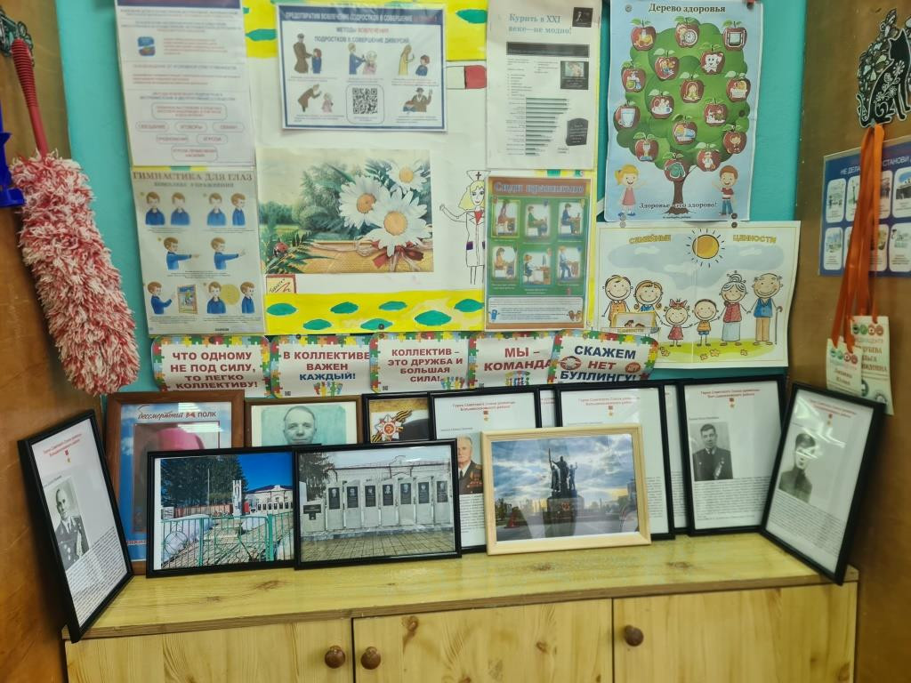 Учащиеся 6 "Б" класса МБОУ "Большесосновская СОШ" предложили создать выставку фотографий на тему "Память о войне". Учащиеся 6 "Б" класса МБОУ "Большесосновская СОШ" оформили и организовали выставку фотографий. Это семейные снимки родственников - участников Великой Отечественной войны, современные фотографии двух военных мемориалов - это памятник "Героям фронта и тыла" в городе Перми и Мемориал «Воинам–большесосновцам, участникам ВОВ от благодарных потомков, в честь 30-летия Победы» в селе Большая Соснова, а также герои Советского Союза Большесосновского округа, совершившие подвиг. Всего получилась выставка из 18 фотографий, каждая из которых связана с Пермским краем. Ребята готовы проводить экскурсию и рассказать о каждой фотографии нашей выставки. А после провели душевное чаепитие с родителями, на котором вспоминали о героях и событиях Великой Отечественной войны. Тематический пирог, посвященный Дню Победы, приготовила Мария Кузнецова под руководством своей мамы Веры Владимировны Кузнецовой. Благодарим наших родителей за помощь!
