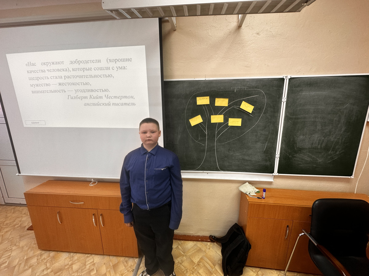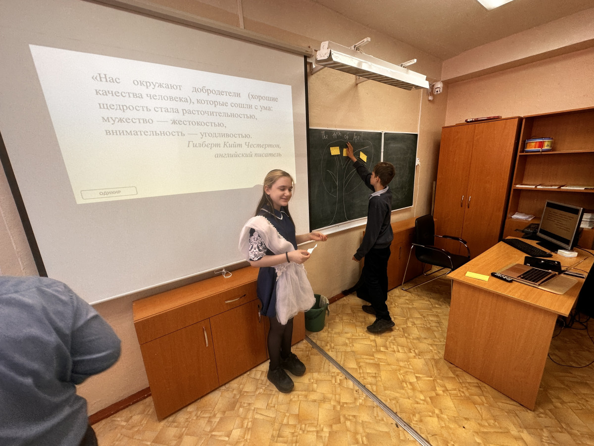 Во время социальной практики ученики 6 г класса провели занятие, посвященное добру. Ученики учились проявлять эмпатию и работе в команде. Занятие прошло в три этапа. На этапе обсуждения ребята пообщались на тему "Что такое добро?" Все высказались своим мнением и поделились чувствами и эмоциями, которые они испытывают когда совершают добрые дела. Во время игры "Добрая почта" ученики написали друг другу ананимные сообщения с комплиментами и пожеланиями на будущее. А в конце занятия ребята создали собственное дерево добрых дел, где записали свои прошедшие и планируемые добрые дела.