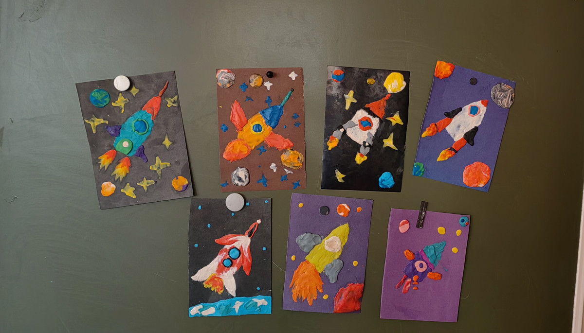 В преддверии Дня космонавтики ребята посмотрели фильм "Эра". При обсуждении фильма выяснилось, что дети мало знают о данной сфере. Приняли решение, как и ребята из фильма, изучить материал. Обратились за помощью в библиотеку, находящуюся в нашем районе. Ребята читали книги, собирали материалы в интернете, делились в классе новостями, необычными фактами о космосе, людях, работающих в данной сфере. Итогом стала выставка книг и журналов о космосе. Ребят очень захватила работа. Работники библиотеки, видя интерес и бурную деятельность, предложили провести итоговое праздничное мероприятие и мастер- класс по изготовлению открытки к Дню космонавтики. Дети с удовольствием приняли участие! Затем фотографировались, за чаепитием читали стихи! На следующий день на уроке труда выполнили работу из пластилина; каждый лепил свою ракету, на которой мечтал побывать в космосе.