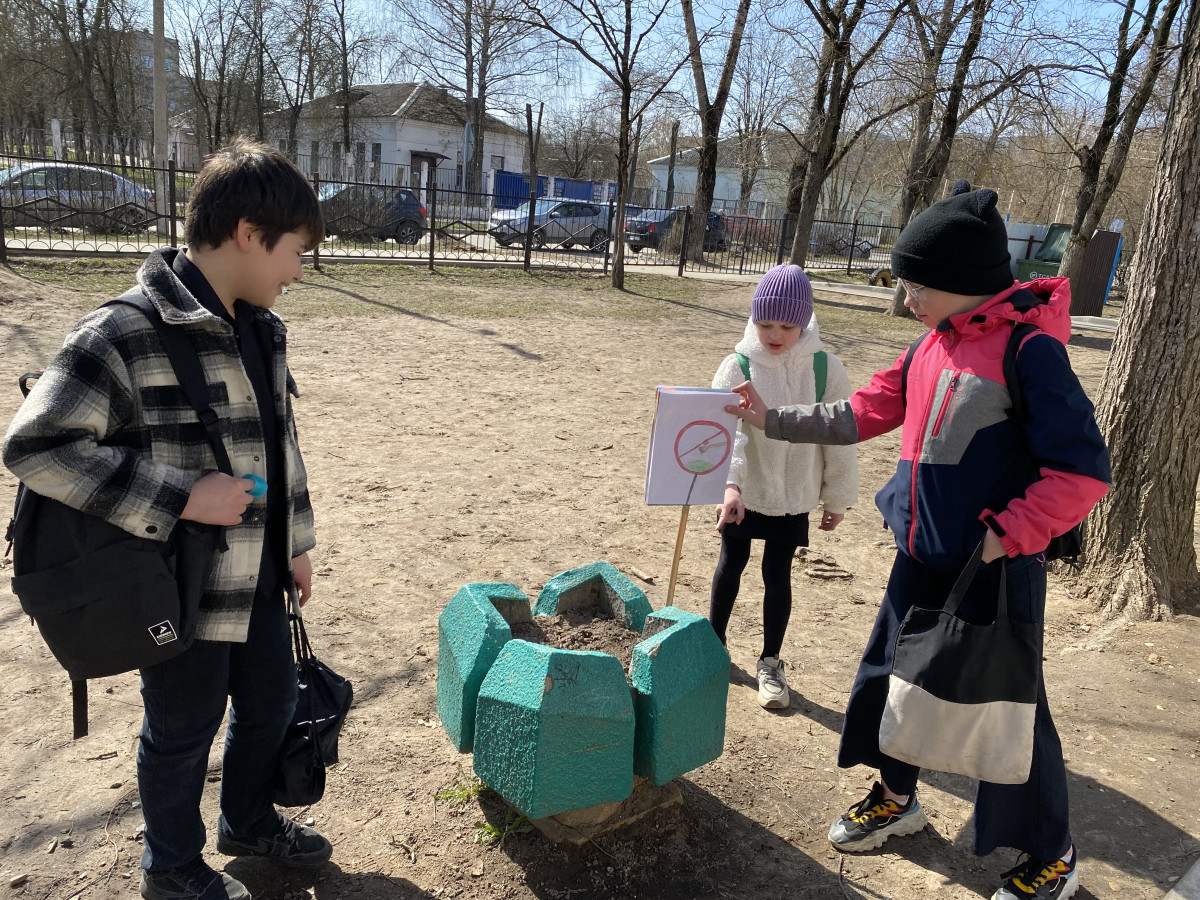 Учащиеся начали дискутировать, какое благо они могут сделать для окружающего мира. Выбор остановили на природоохранной акции «Знаки сделаем мы дружно и расставим там, где нужно, чтобы людям показать, как природу охранять». Основная цель: напомнить окружающим о экологически грамотном поведение на природе.