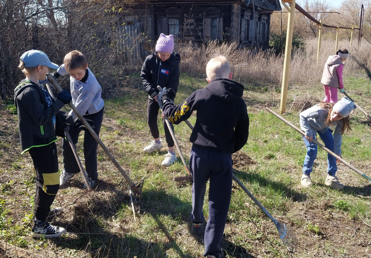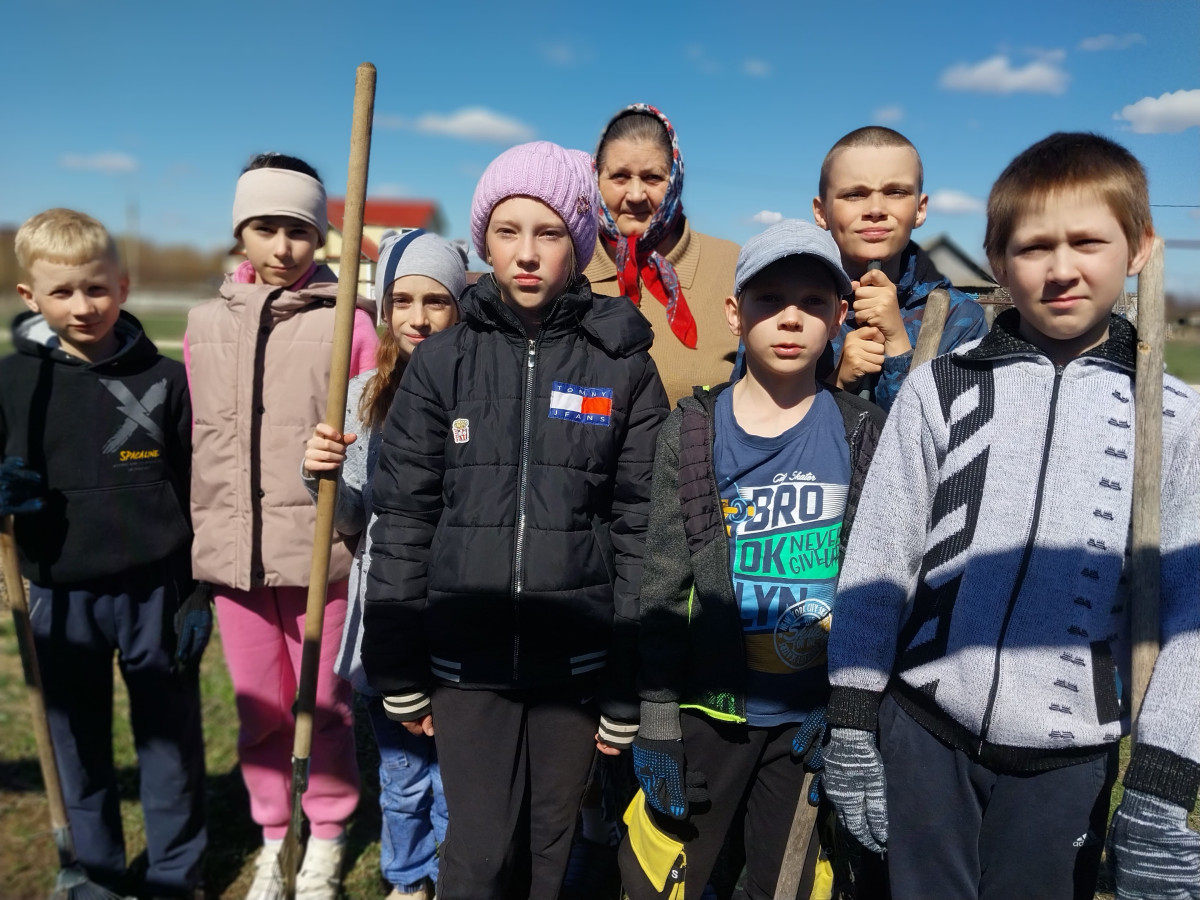 Для посадки еще рановато , а помочь в уборке возможно. Дети очень старались и порадовались своим результатам и порадовали бабушку.