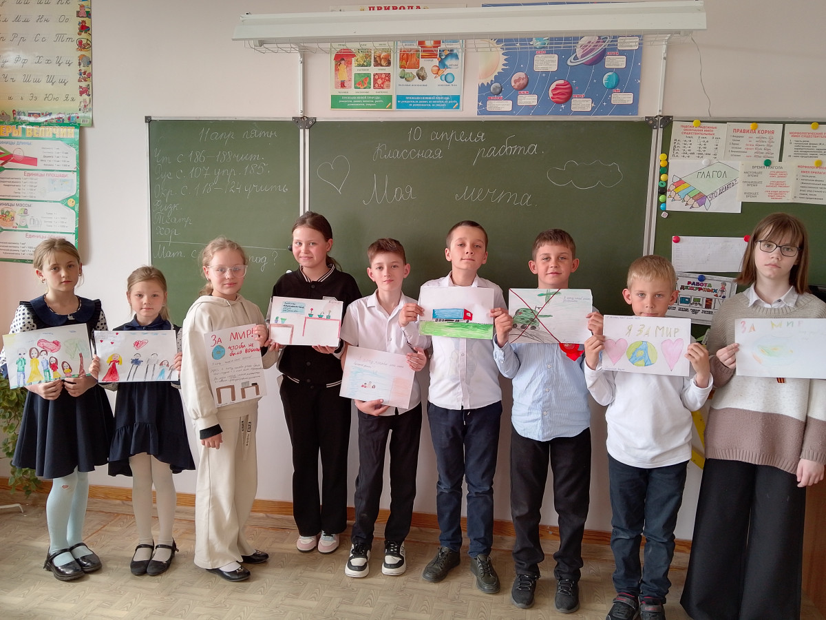 В рамках проекта " Киноуроки в школах России " ученики 3 класса с большим удовольствием посмотрели фильм “Эра”. После просмотра вместе с классными руководителями обсудили темы, которые были затронуты в фильме. Ребята размышляли над действиями и характерами главных героев. Ребята сделали вывод, что нужно идти за своей мечтой, нельзя от нее отказываться. Третьеклассники нарисовали свою мечту и написали, о чем мечтают. Многие дети мечтают о мире, чтобы поскорее закончилась СВО. Ребята решили отправить свои рисунки о мире солдатам на СВО, чтобы их поддержать.