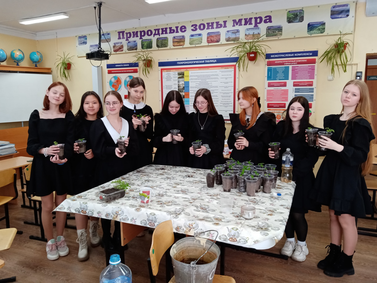 В нашей школе в 80 летию Великой Победы реализуется акция - 80 добрых дел. После просмотра фильма "Там где мечтают медведи", учащиеся предложили посадить рассаду цветов для наших школных клумб. Им за хотелось , чтобы наша школа, была летом цветущим уголком и радовала всех жителей нашего родного посёлка. Мы с девчатами раньше посадили рассаду и затем рассадили её в большие стаканчики. Девочки, рассаживая цветы, представляли какие они вырастут, как они будут их высаживать на клумбы во время летней практики. Делали они это от души, с любовью. Чувствовалась их ответственность за маленькие растения, что их надо поливать. Украшая школу, мы украшаем частицу нашей планеты.