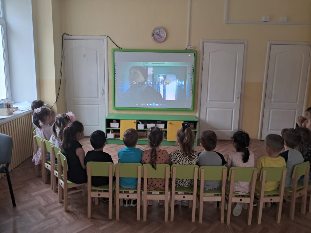В рамках реализации проекта "Киноуроки в школах России и мира фильм "Хорошие песни" посмотрели взрослые( родители и педагоги) и дети старшей группы "Аленький цветочек" муниципального бюджетного дошкольного образовательного учреждения "Детский сад 49 общеразвивающего вида г.Владивостока".Перед просмотром фильма ребятам в группе был прочитан рассказ, который лег в основу сценария. После прочтения состоялось очень активное обсуждение: что такое доброжелательность, почему люди могут вести себя по отношению к другим недоброжелательно,что может помочь людям, у которых много забот. Когда ребята посмотрели фильм реакция у всех была разная: радость, печаль, грусть, веселье.
