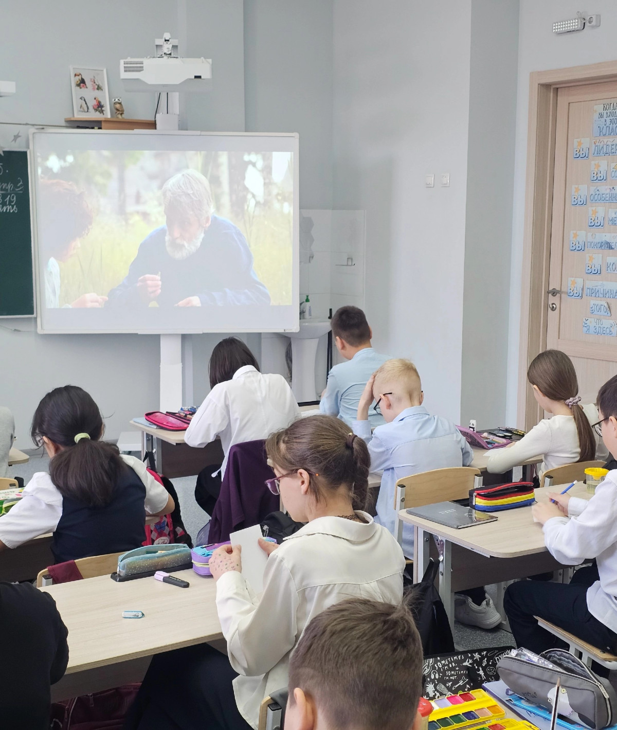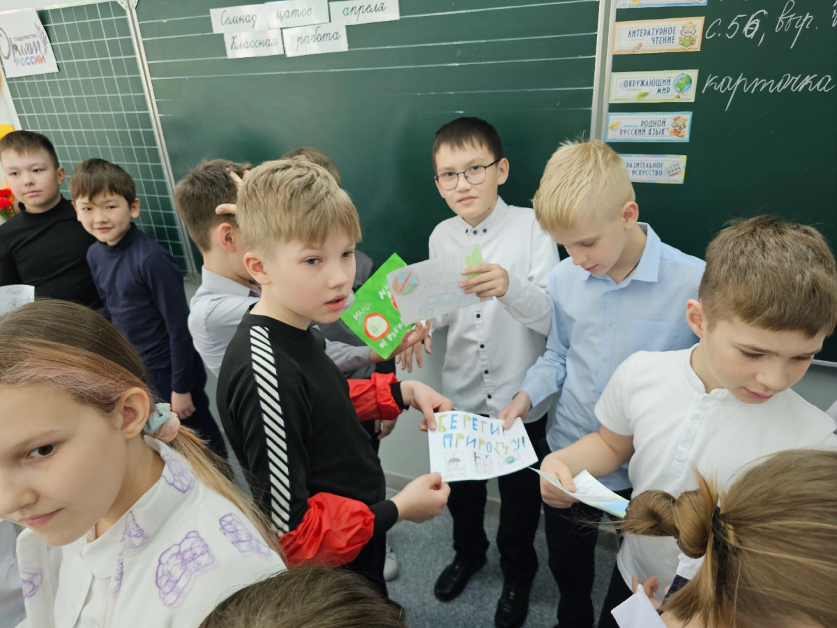 17 апреля 2025 года в рамках проекта «Киноуроки в школах России» учащиеся 4 "Е" класса посмотрели короткометражный фильм «Стеша". Дело предложено педагогом. Участвовали в практике классный руководитель, учащиеся 4 «Е» класса, учащиеся школы. Детям очень понравился фильм, а особенно главная героиня. Ребята обсудили его и тему, которая была в нем затронута. Фильм учит нас бережно относиться к окружающей нас природе. Ученики очень много говорили о бережном и уважительном отношении к природе и животным. Они сами захотели внести свой посильный вклад в дело защиты экологии. Учащиеся вспомнили, что на уроках окружающего мира говорили о том, какую экологическую проблему создает мусор из пластика, так как до сих пор не изобретен способ его полной переработки. Ребята сделали вывод, что фильм учит уважительному отношению к животным, бережному отношению к природе. А также раскрыли главные человеческие качества этого фильма – благородство, героизм, заражать других своим бесстрашием и отвагой, добротой, любовью ко всему живому. Только от нас самих зависит хорошая экология или плохая. Что же мы можем сделать, чтобы защитить окружающий мир? Мы с ребятами решили выполнить общественно полезное дело, которое подтверждает идею фильма и устроили просветительскую акцию с раздачей листовок «Все зависит от нас самих», а так же на внеурочной деятельности в классе поиграли в обучающую настольную игру «Экология и мы»