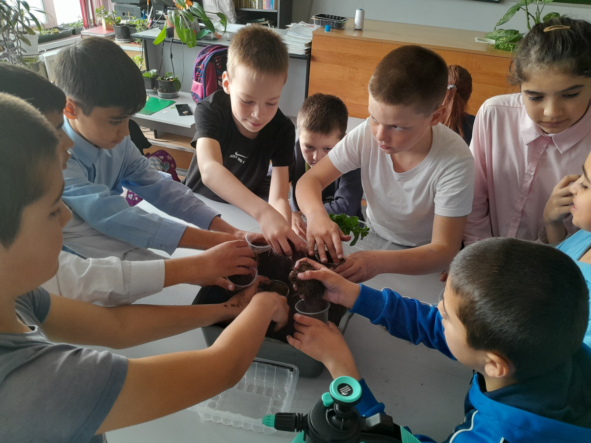 После просмотра киноуроки "Стеша" Орлята 3 класса тоже решили позаботиться о чистоте и красоте нашей земли и места где мы живем. На улице лежит снег, поэтому было решено убраться в классе, убраться в аквариумах у черепахи и моллюсков. Черепахе Донателло устроили гастрономический день, накормили его креветками. Еще одним важным делом было пикировка рассады петуний.