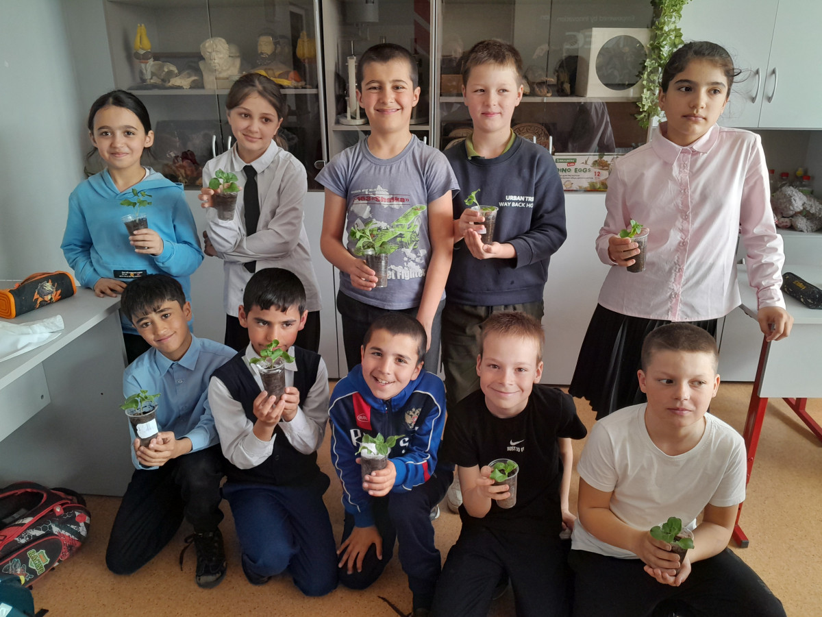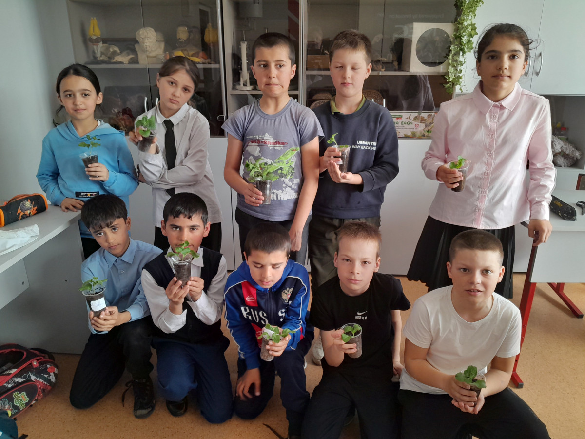 В нашей школе ежегодно проходит акция "Цветок Победы". Мы выращиваем рассаду петуний и тагетеса , ч то бы потом высадить их на клумбы возле братской могилы и Храма. Все лето наша братская могила и храм пестрят яркими красками и радуют глаз жителей, приходит и гостей. Живите по твердому правилу:" Поутру встал, умылся, приведи себя в порядок - и сразу же приведи в порядок свою планету " Маленький принц. (Антуан де Сент-Экзюпери)