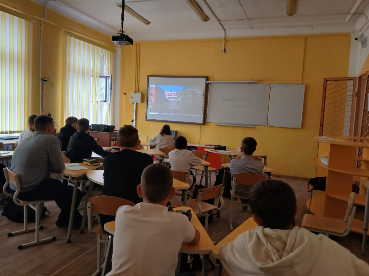 После просмотра фильма ребята вместе с классным руководителем приняли участие в уборке пришкольной территории.
