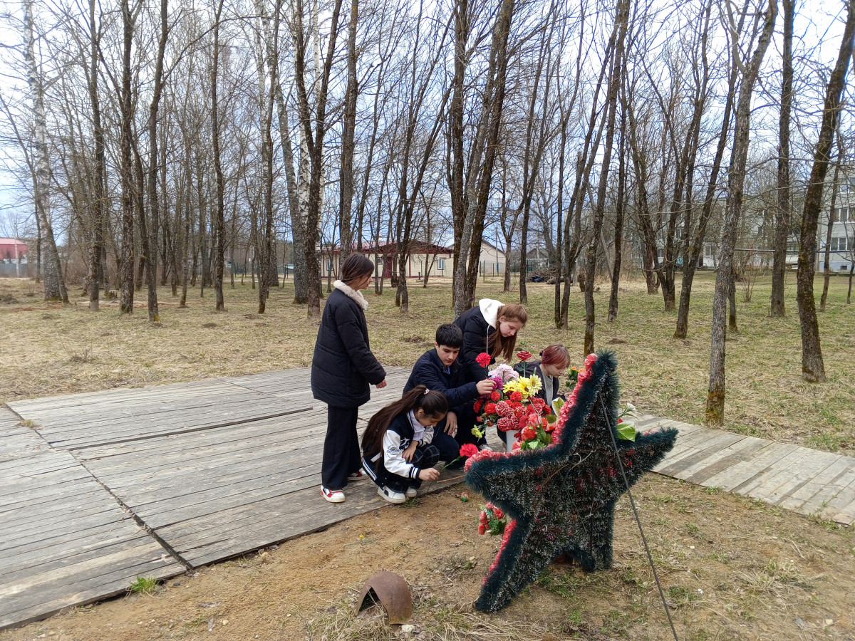 В качестве социальной практики дети изъявили желание посетить братское захоронение воинам 375 Уральской дивизии, они убрались возле памятника, возложили цветы, почтили память героев, освобождавших нашу родную землю, минутой молчания.