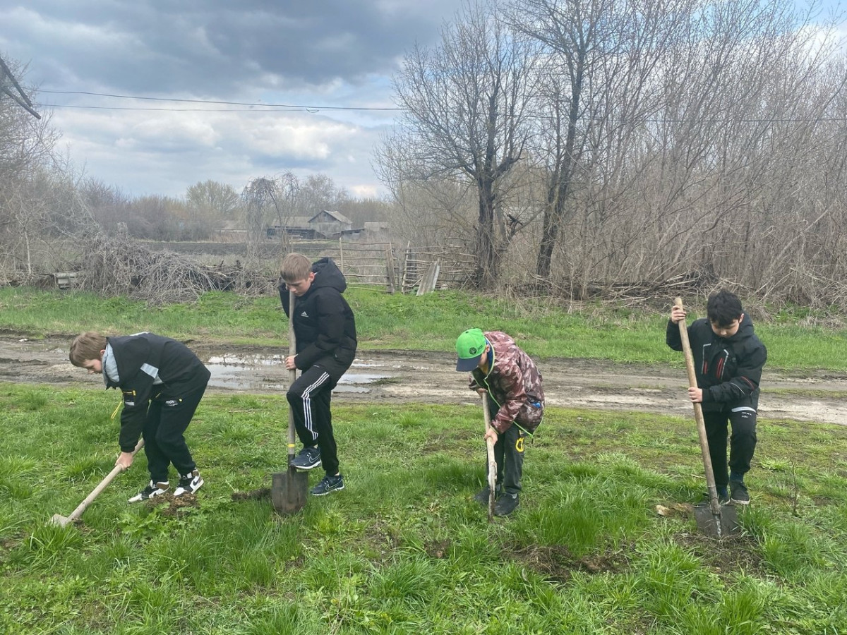 После активного обсуждения фильма, ребята вместе с классным руководителем решили сделать коллективное дело и посадили на пришкольном участке плодовые кустарники.