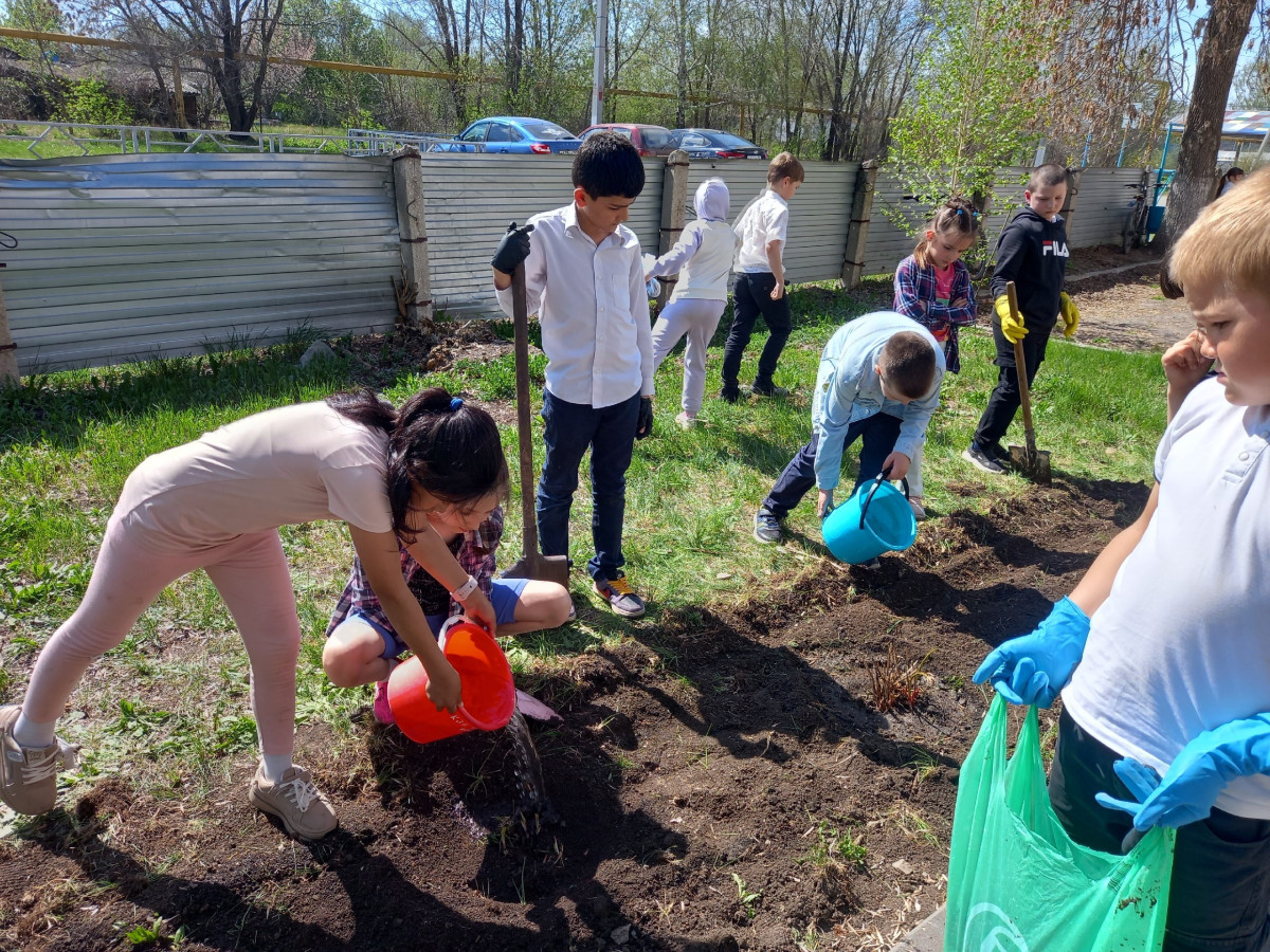 Ученики 3 класса ГБОУ СОШ ж.-д. ст. Звезда, посмотрели киноурок "Стеша". Данный фильм произвёл неизгладимое впечатление на ребят. Ученики предложили в преддверии Всемироного дня Земли принять участие в акции "Клумба Орлят". Наставники помогли разбить и вскопать грядки возле школы, родители передали посадочный материал, дети принесли лейки, лопаты, грабли. Потом на помощь пришёл 2 класс. Весёлой дружной компанией мы засадили клумбу цветами, которую теперь каждый день поливаем.