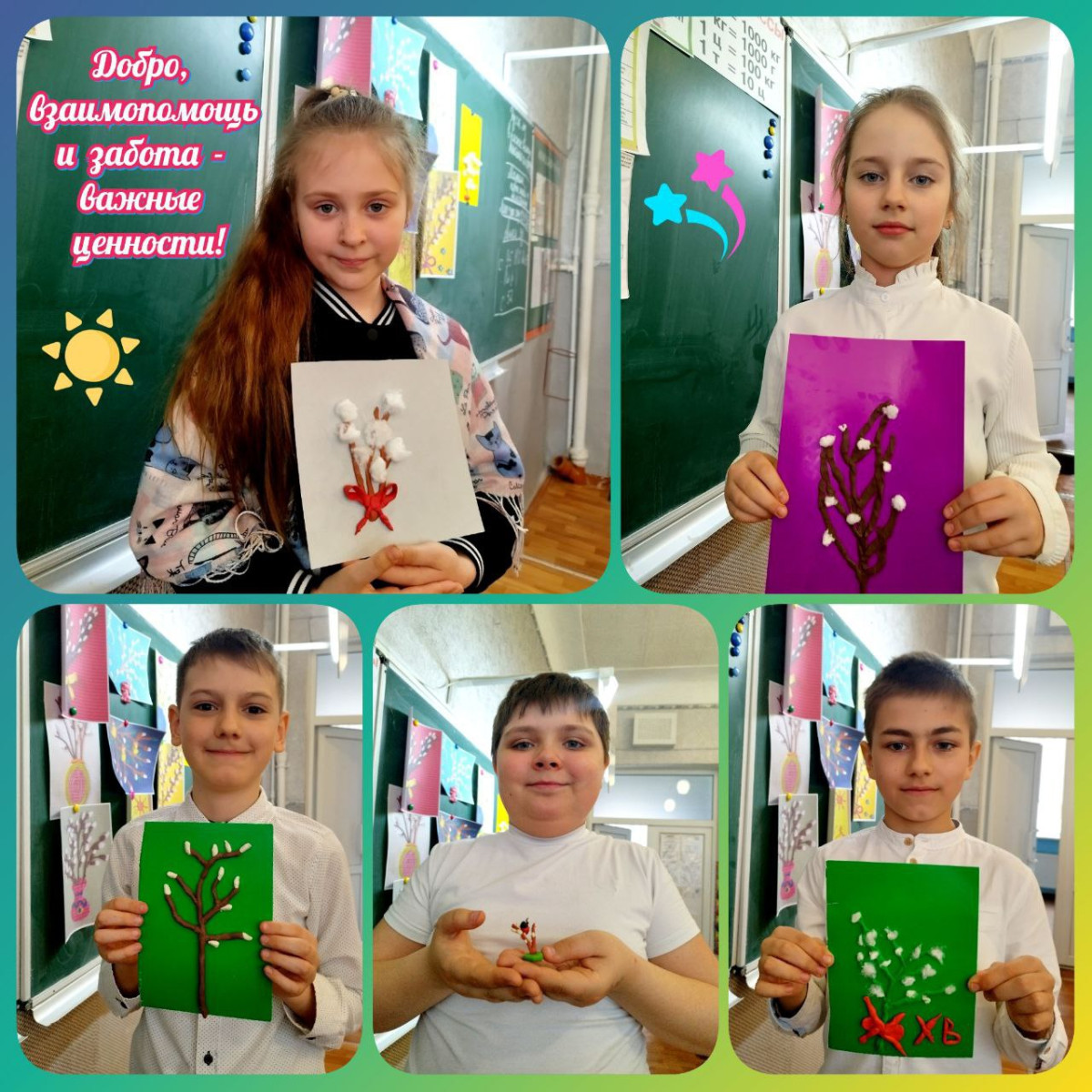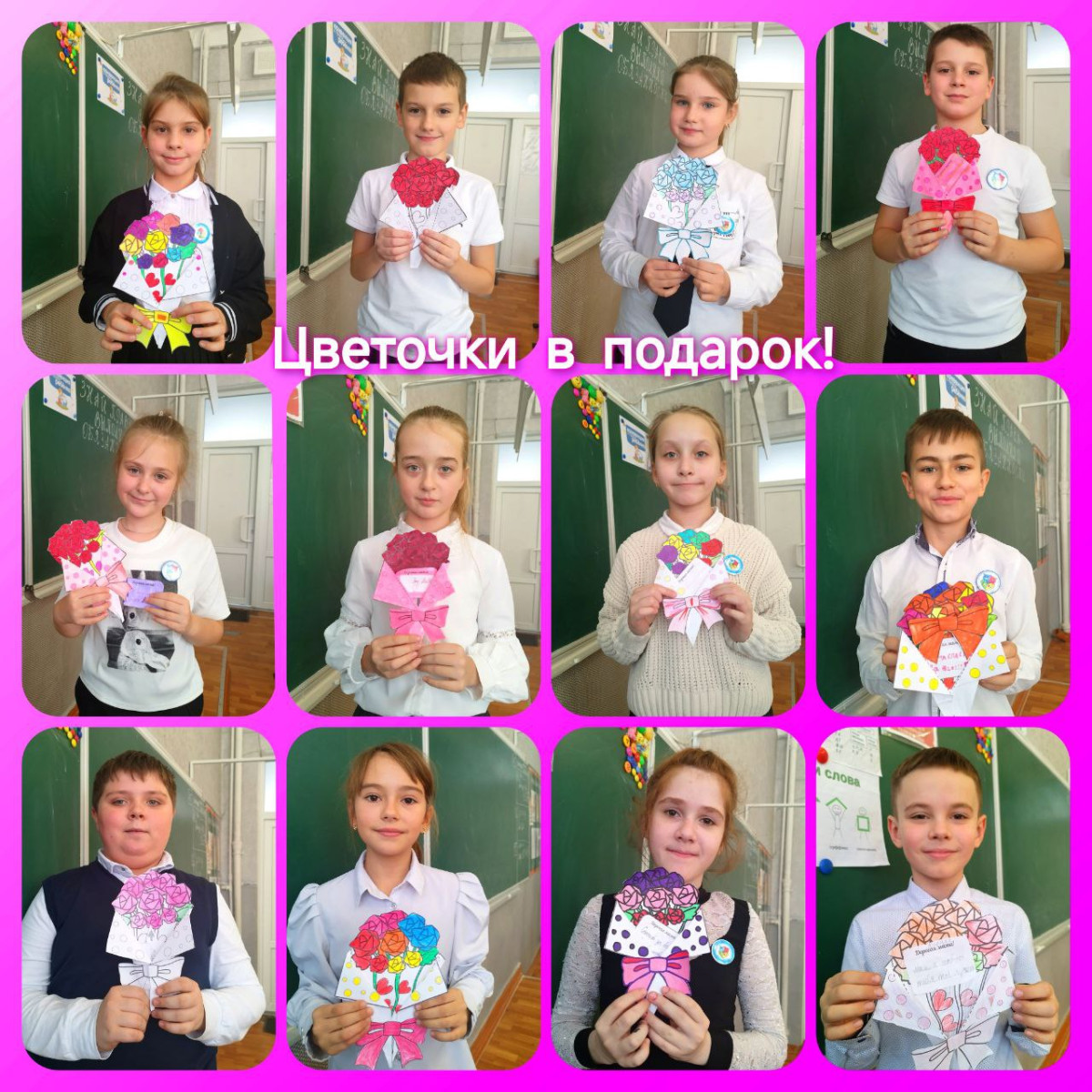Просмотрев фильм "8 Марта", ученики 3-А класса ещё раз убедились, что дарить людям заботу, внимание и добро – одна из важных миссий человека на Земле. Ребята сделали вывод, что чуткость, добрые слова и действия, которые невольно поднимают настроение окружающим и вызывают у них улыбку, - бесценны! Они предложили идею создать инициативную группу под руководством классного руководителя, подобрать слова поздравлений для учителей гимназии и выступить на школьном концерте, посвященному Международному женскому дню. Ученики очень рады были результатам своего труда - ведь благодаря их артистизму, душевному и выразительному выступлению дети подарили минутки радости и счастья зрителям. Ребята решили не останавливаться на достигнутом и поздравили своих мам, бабушек и сестричек открытками к 8 Марта, родных и близких к празднику Вербного Воскресенья и Светлой Пасхи. Ещё ребята поучаствовали в городской акции «Пасхальный кулич военнослужащим».Ученики верят, что подаренное внимание и добро вернутся к ним обязательно!