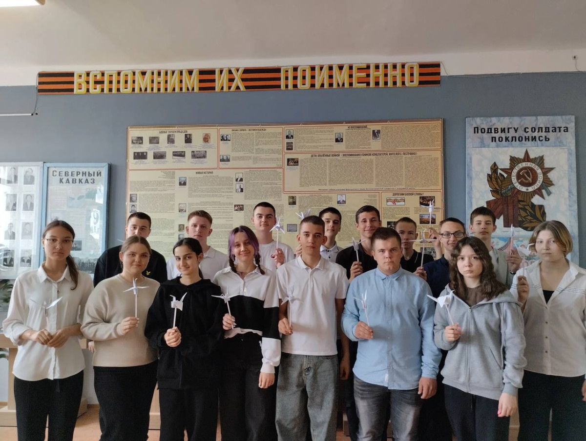 После просмотра фильма "Навсегда" учащиеся сделали вывод о том, что нельзя забывать не только историю своей страны, но и о подвигах наших предков, о том какой ценой они победили. Каждый из ребят сделал оригами «Белого журавля памяти» в рамках патриотической акции, чтобы почтить память о родственнике, погибшем в годы Великой Отечественной войны. К просмотру фильма и к участию в акции присоединились и другие обучающиеся 9-ых классов.