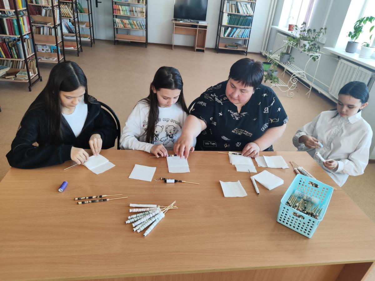 На следующий день, мы ученики 6-го класса распределили обязанности, что кому принести. Наши родители приобрели нам: шпашки, спички, нитки, салфетки. А мы после уроков остались в библиотеке школной и стали вместе с учителем изготавливать Свечи Жизни. Что нам потребывалось: Длинные шпажки, спички, нитки (для шитья), салфетки бумажные и в конце парофин.