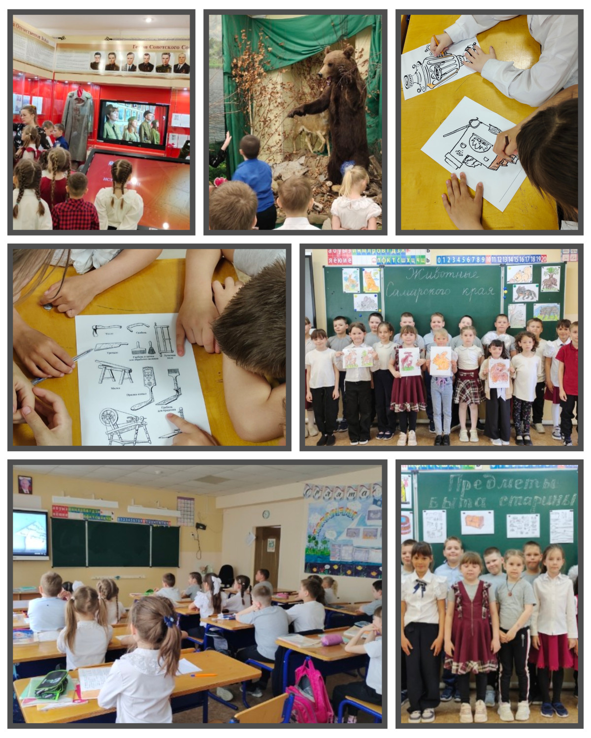 В рамках проекта "Киноуроки в школах России и мира" учащиеся 1В класса посмотрели фильм "Когда небо улыбается". Радость познания испытали герои фильма, узнав о подвигах своих сограждан. В рамках социальной практики решили провести "Неделю краеведения". Сходили в Сергиевский краеведческий музей, где познакомились с историей образования Сергиевска, с героями односельчанами, с работами художников и мастеров декоративно-прикладного искусства. Очень интересным было посещение русской избы. Удивило разнообразие видов птиц и животных нашего края. На следующий день ребята в классе выступали с сообщениями о животных нашего края и рисовали их. Затем разбившись на группы, приготовили рассказы о предметах быта старины. Нарисовали старинные бытовые приборы. В конце недели дружно отвечали на вопросы онлайн-викторины. Результат средний, значит, есть к чему стремиться. Будем продолжать изучать историю родного края.