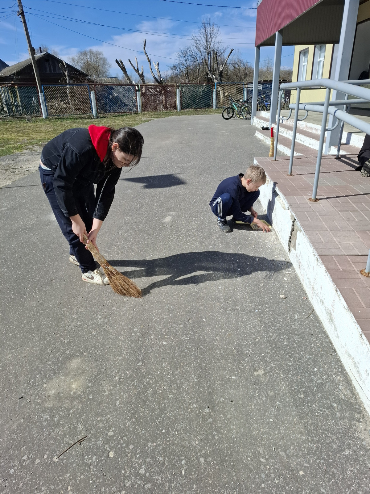 После обсуждения фильма, ребята приняли участие в общественно полезном деле – благоустройство школы.