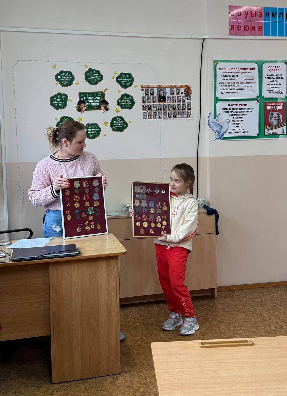Ученики 1 "А" класса посмотрели фильм "Когда небо улыбается". После этого долго обсуждали важно ли помнить историю своей страны, края, семьи. Возник вопрос "Что вы можете рассказать о своих родственниках, которые воевали в годы Великой Отечественной войны?" Лишь несколько ребят знают, что их прадедушки и прабабушки участвовали в войне, но подробности рассказать не смогли. Поэтому было принято решение найти информацию о них и поделиться с классом. Некоторые выбрали вариант записать видео с рассказом, а кто-то решил, что лучше попросить помощь родителей и вместе подготовить классный час. Дети с особой внимательностью слушали каждого, рассматривали портреты и медали. На себе прочувствовали радость познания, чувство гордости и важность таких фильмов и занятий.