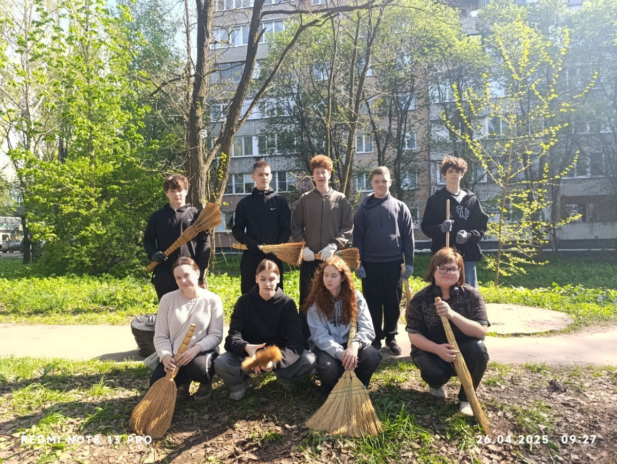 Ребята решили принять участие в уборке района в котором живут. Они убирали прошлогоднюю листву, убирали ветки, мусор. И для них мир становился чище.
