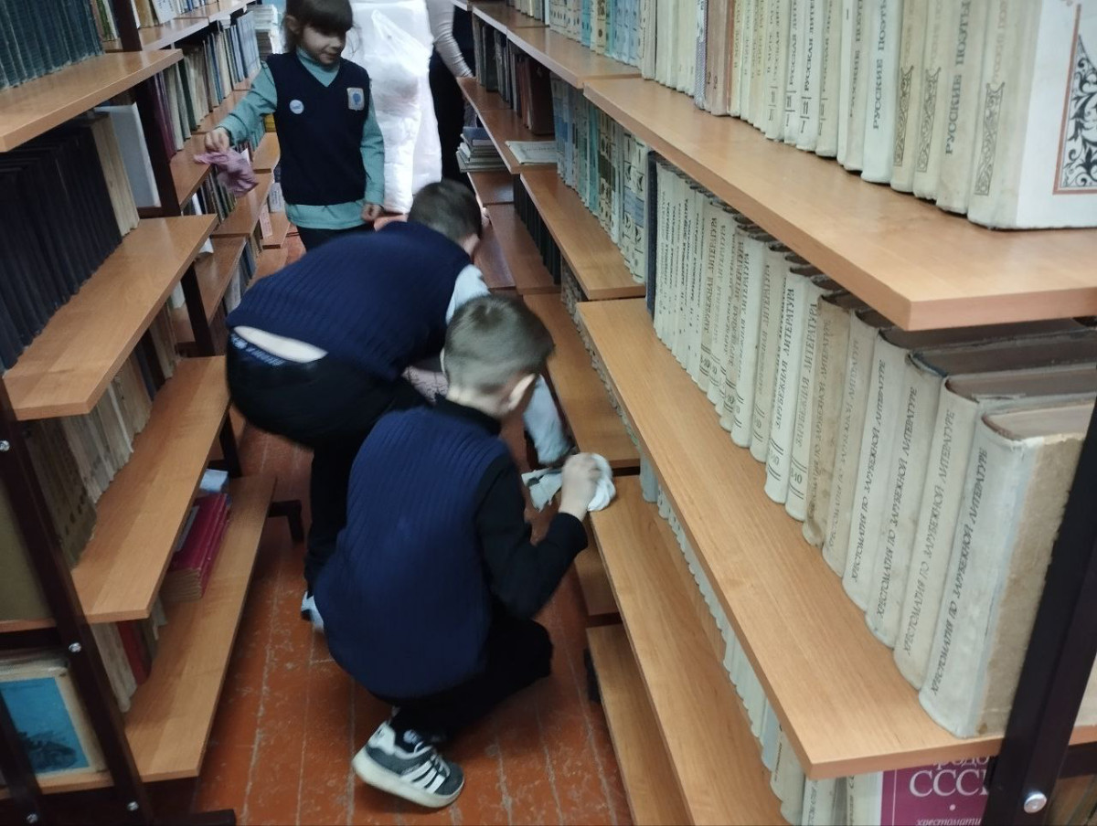 Дети тоже решили сделать доброе дело. В свободное от уроков время они сделали уборку в школьной библиотеке. Ребята протирали пыль, наводили порядок на книжных полках. Своей работой все остались довольны. Ведь совместная работа не только сплачивает, но и приносит радость от плодов своего труда.