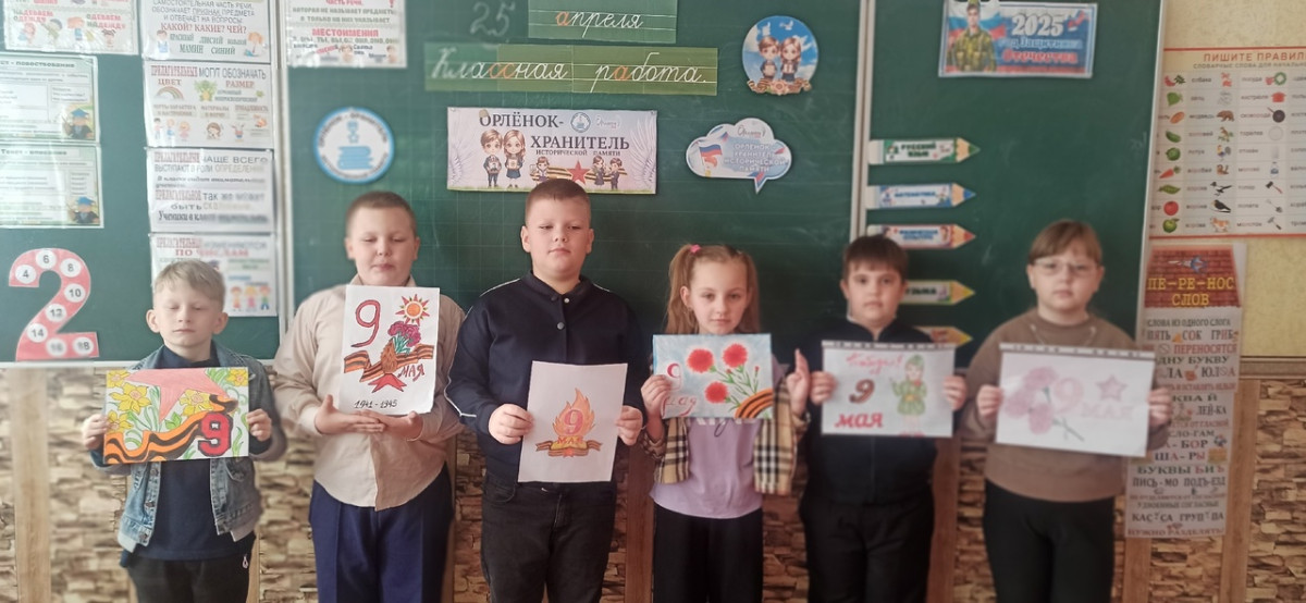 Также дети создали плакат "9 мая" , участвовали в конкурсах рисунков, писали письма ветеранам ВОВ, отправляли посылки солдатам СВО. Одна из учениц класса приняла участие в Международном творческом марафоне "День Победы"