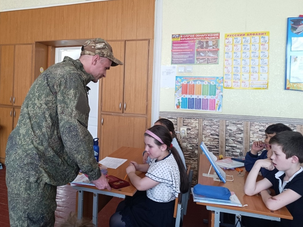 Как же дети были рады, когда в рамках проекта "Диалоги с героем" к нам в класс пришёл участник СВО и папа одной из учениц. Дети с огромным любопытством задавали ему вопросы, рассматривали его награды и подарили много объятий и тепла.