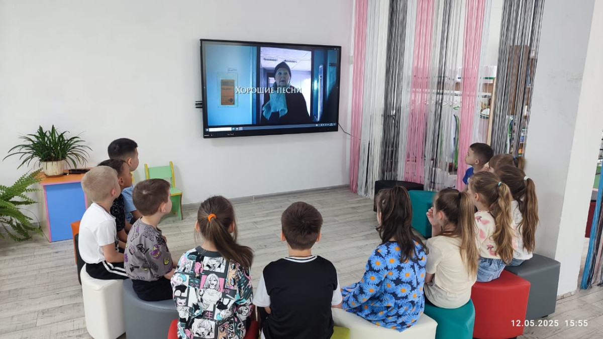 Для актуализации представлений ребят л понятии "доброжелательность" я предложила ребятам посмотреть фильм "Хорошие песни".Фильм ребятам понравился, они очень внимательно его смотрели, хмурились, улыбались, когда слышали песни После просмотра мы обсудили, как вела себя бабушка и мальчик с мамой. Влад сказал: "Бабушка злая и ворчливая, а мальчик с мамой добрые и хотят, чтобы у всех всё было хорошо". Алиса сказала: "Мне понравилось, когда ребята стали петь песню, и бабушка стала добрее и даже угостила ребят пирожками". После обсуждения героев фильма дети сделали вывод, что доброжелательность можно проявить с помощью хороших песен и музыки. Они поднимают настроение и делают людей добрее. Мы совместно с детьми приняли решение провести социальную практику в центре нашего города и порадовать бабушек песнями, раздать листовки с песнями и совместно с прохожими спеть песню Михаила Исаковского "Катюша".Для реализации социальной практики нам на помощь пришли родители. Софья совместно с мамой распечатали текст песни Михаила Исаковского "Катюша"