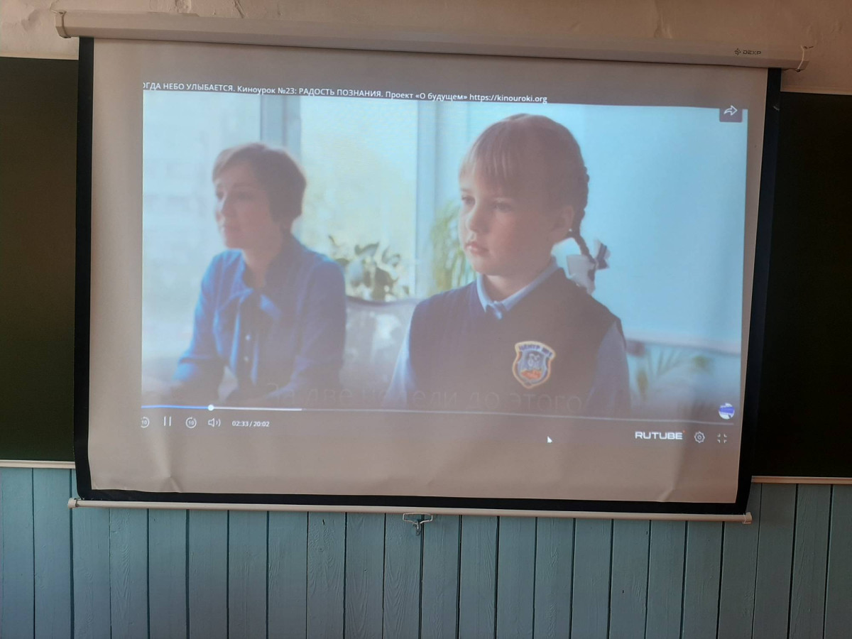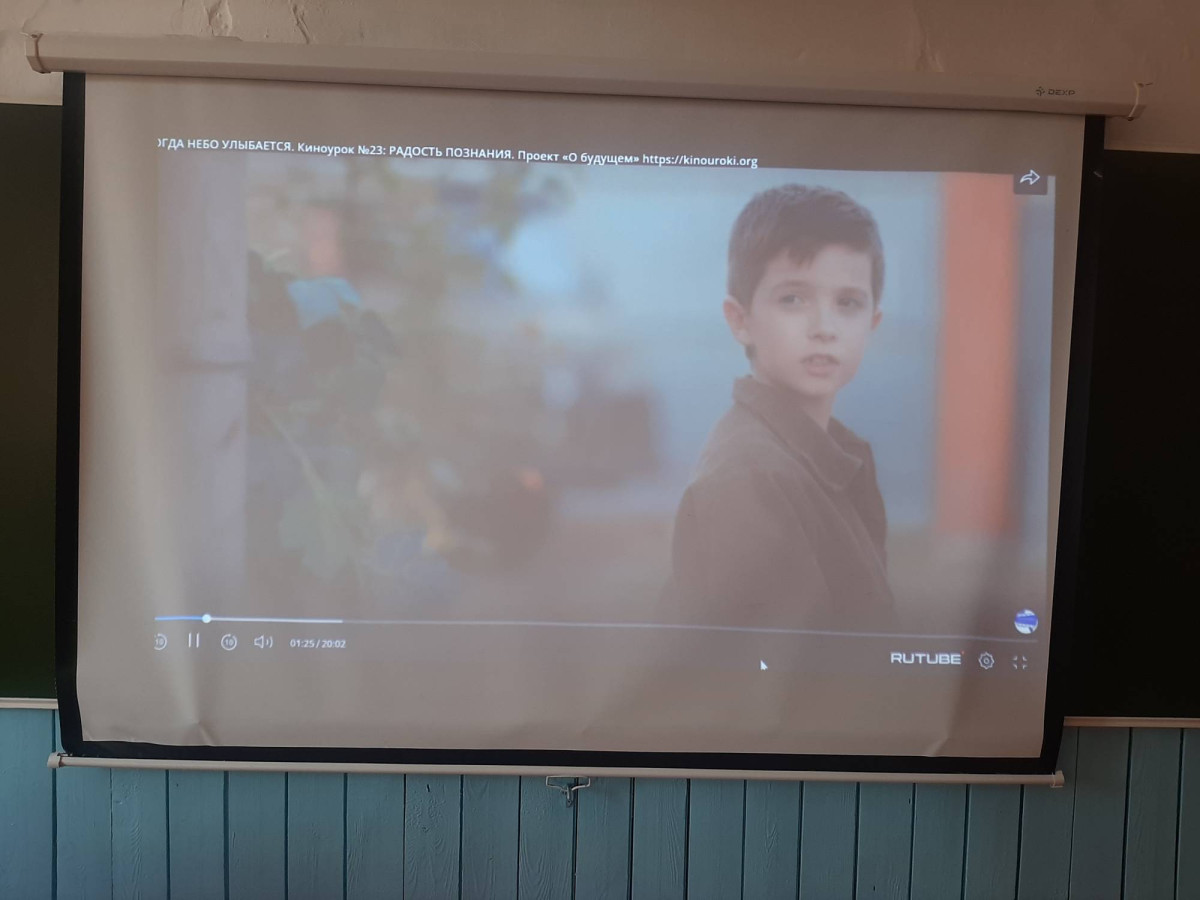 Учащиеся 7 класса посмотрели фильм «Когда небо улыбается». Перед просмотром фильма ребятам было предложено прокомментировать понятие радость познания, которое является темой киноурока. А также выяснили антипод определения невежество.