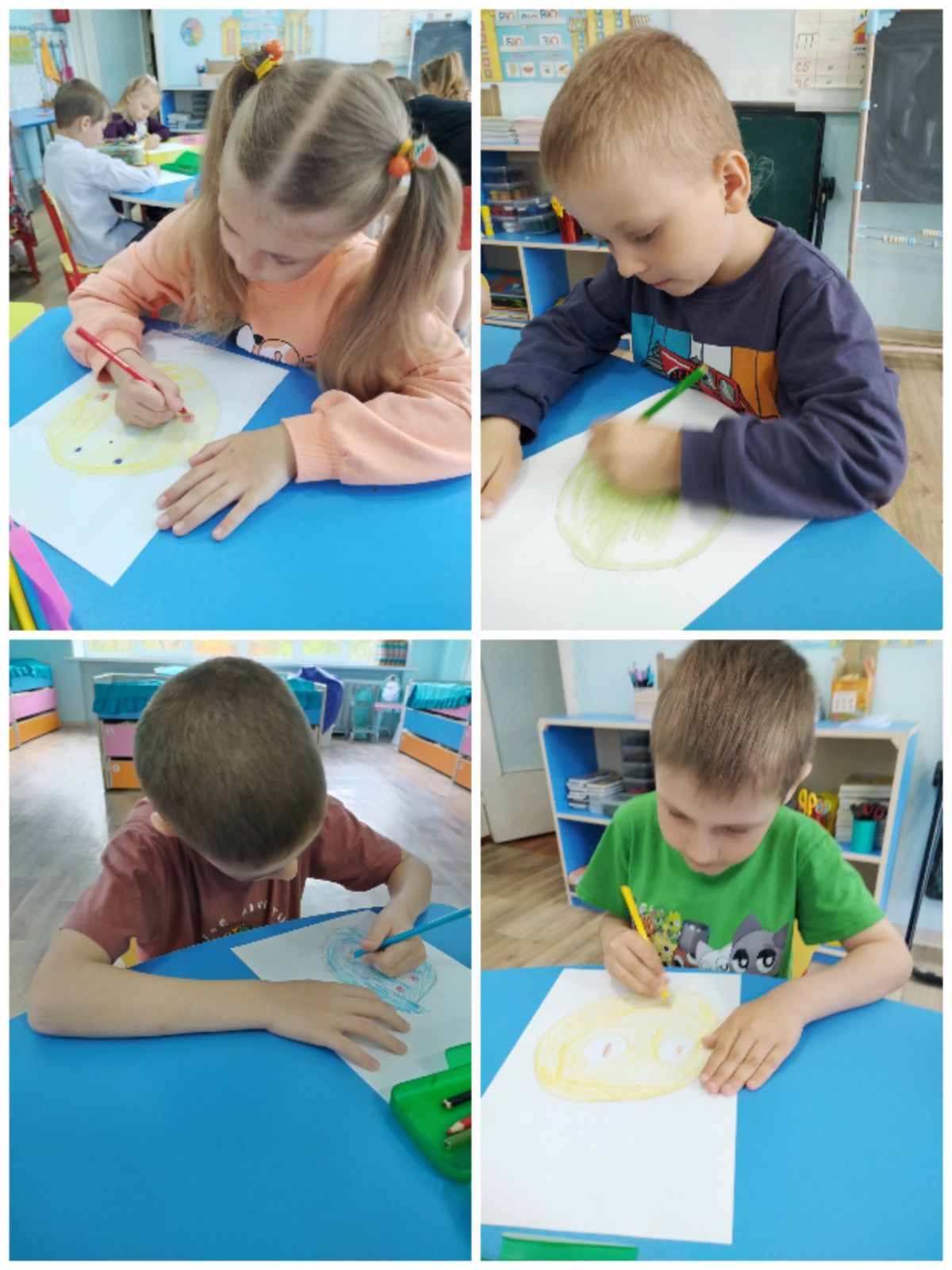 ✨На предварительном этапе в ходе упражнения "Превращалки" дети с помощью жестов и мимики смогли передать различные эмоции. Позже каждый ребёнок постарался изобразить, как себе представляет эмоцию "Злость" и нарисовать свое настроение.
