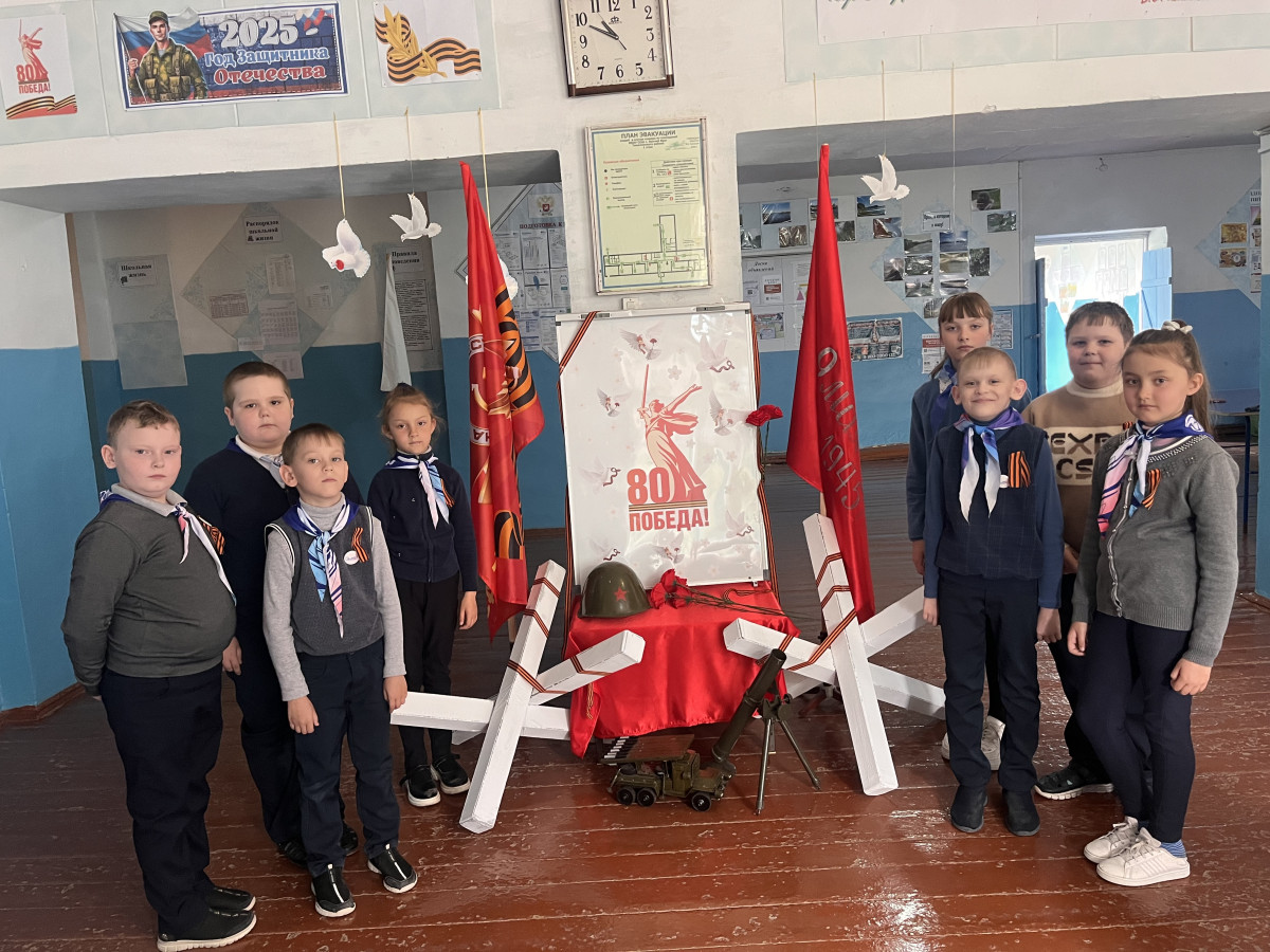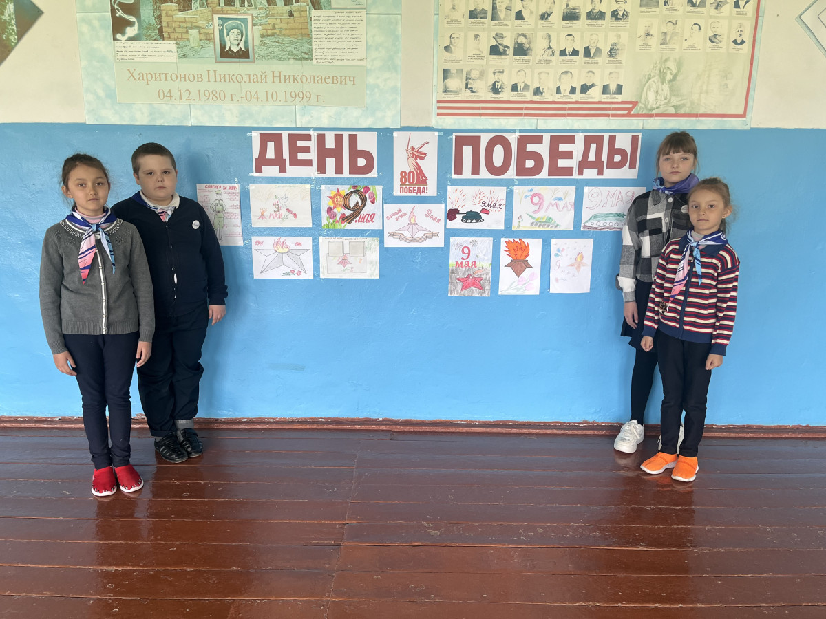 К юбилейной дате, посвященных Великой Победе, ребята участвовали во многих мероприятиях. Они украшали окна Победы, посетили школьный музей, побывали в библиотеке, почитали книги о войне, сфотографировались у Стены памяти героям военных сражений, у стенда Бессмертного полка с «Георгиевской ленточкой», оформили выставку рисунков "День Победы", приняли участие в торжественном митинге ко дню Победы, выступали на концерте к 9 мая.