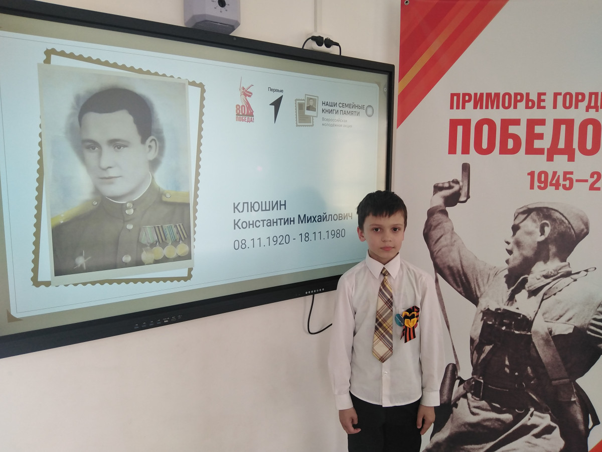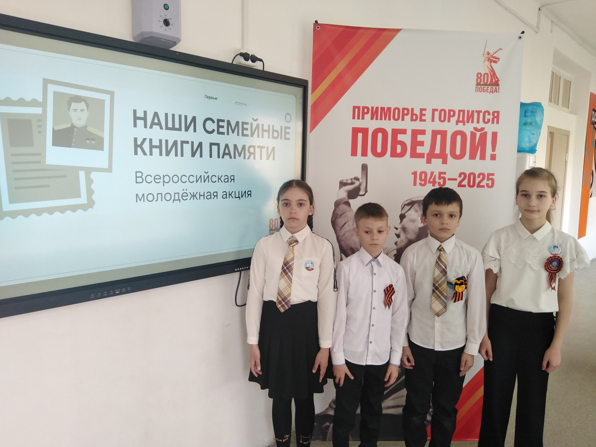 В преддверии великого праздника «День победы» в 3 «А» классе прошло очередное занятие проекта «Киноуроки в школах России». Ученики посмотрели и обсудили фильм «Наследники Победы». Этот фильм повествует о том, что быть наследником Победы — это значит помнить, гордиться и никогда не забывать подвиг наших солдат в Великой Отечественной войне, гордиться подвигом своих дедов и прадедов. Во время подготовки к 80-летию Великой Победы третьеклассники активно принимали участие в различных акциях и мероприятиях. Они со своими родными исполняли песни военных лет, участвуя в акции «Пою сердцем памяти». Рассказывали о своих прадедах при создании «Книги памяти». 7 мая ребята возложили цветы к монументу «Спассчанам, погибшим в годы Великой Отечественной войны».
