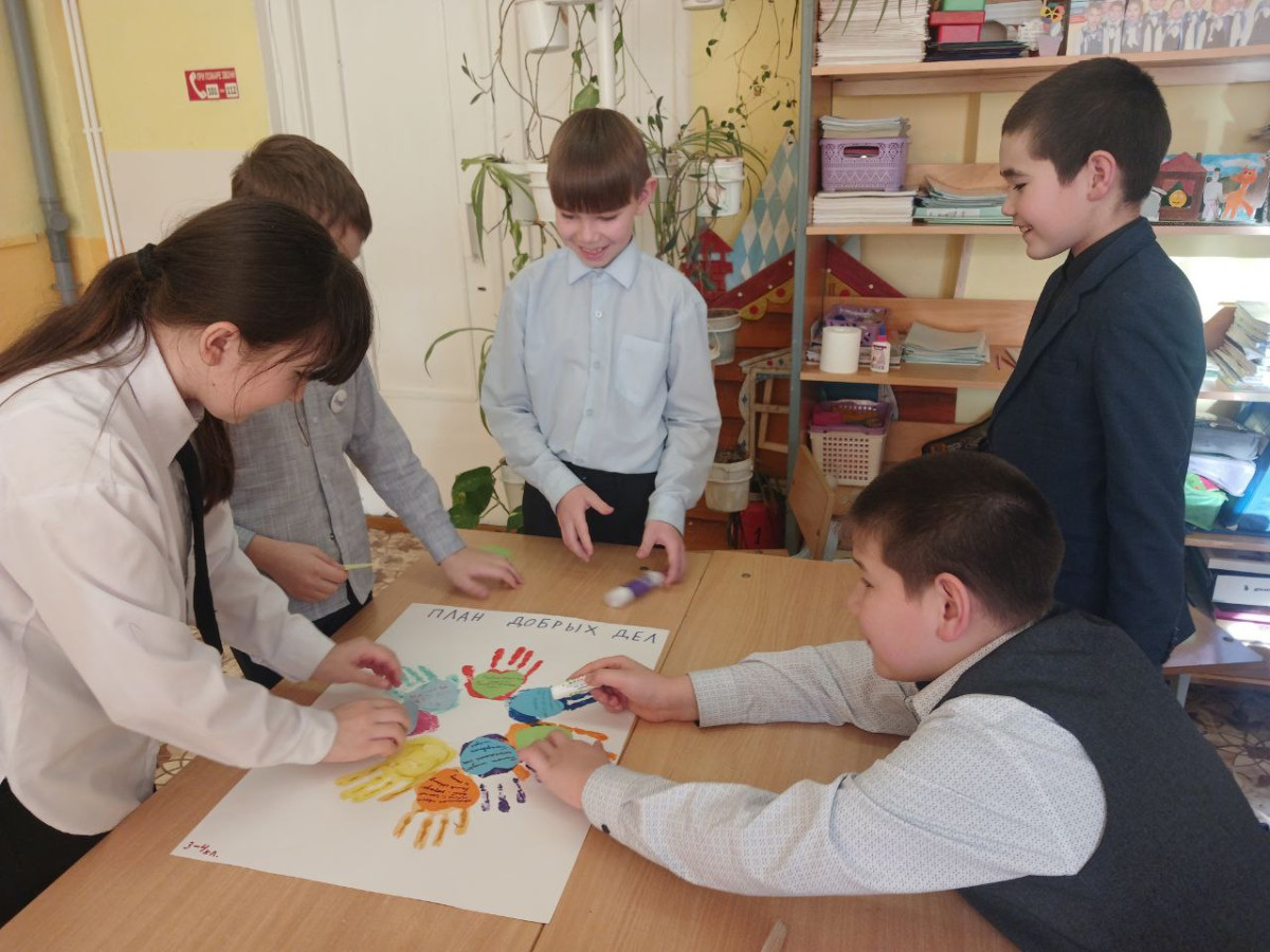В качестве социальной практики ребята предложили провести акцию «Дарим добро». Посоветовались с родителями, вместе составили список добрых дел, в который включили шефство над кормушками для птиц на территории школы и дома, помощь в уборке по классу, ремонт учебников в школьной библиотеке, помощь одноклассникам в сложных заданиях, помощь родителям в домашних делах и другие активности. Ребята активно и с удовольствием выполняли все запланированные дела. А после ремонта книг в бпблиотеке решили собрать книги в подарок библиотеке. После проведения акции ребята пришли к выводу: делая добро, человек получает внутреннюю радость, воспитывает в себе бескорыстие, терпение, сострадание.