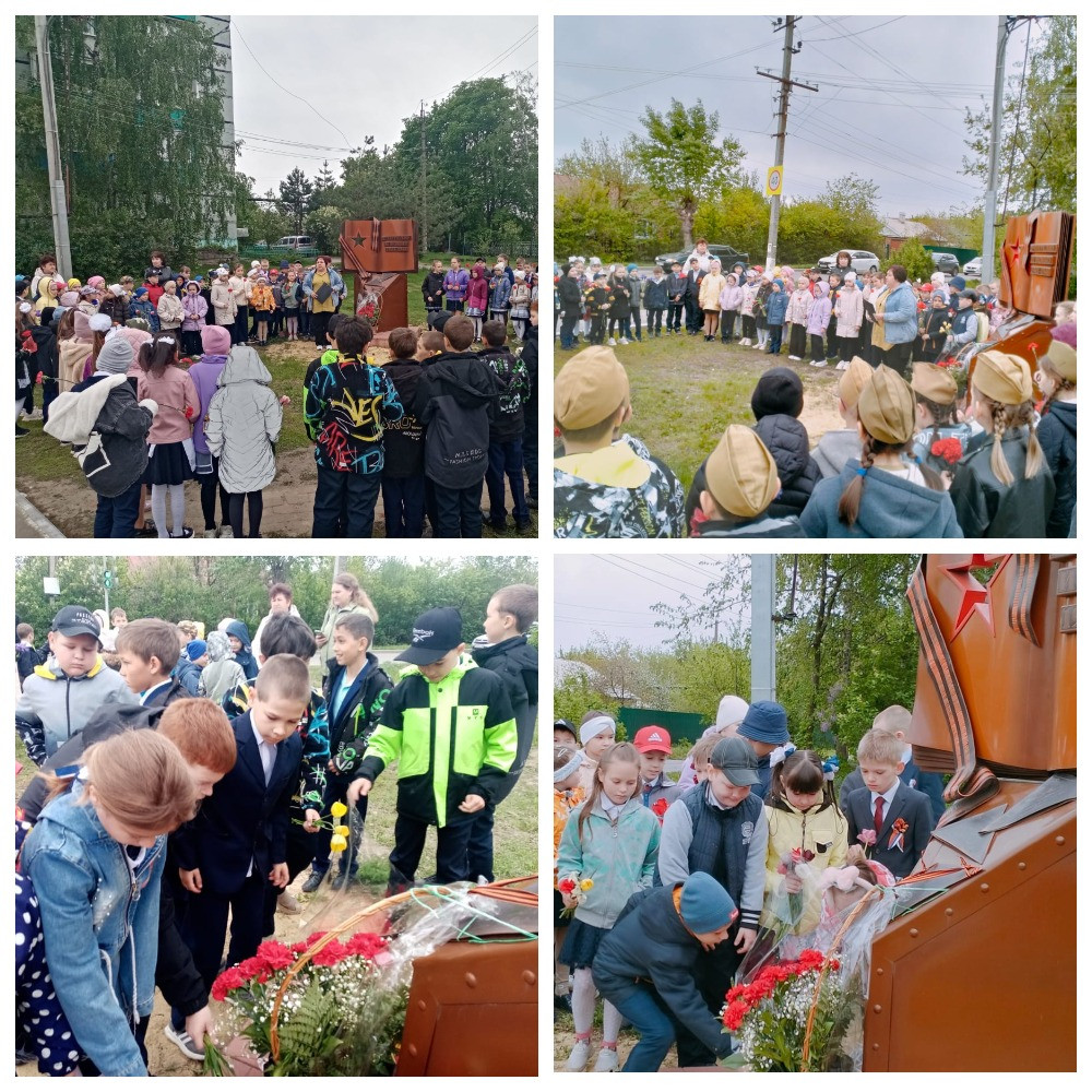 3. Организовали с классным руководителем Ивашкиной Е.В. среди учащихся начальных классов митинг у памятника «Учителю и воину.» Ведь первый директор нашей школы, Михеев Владимир Иванович, тоже участник ВОВ, который послевоенные годы посвятил родной школе. За смелость, отвагу, героизм награждён медалями и орденами Отечественной войны, знаком" Отличный разведчик". Ребята вместе почтили память погибших минутой молчания, склонив головы под тревожный звук метронома. Кульминацией мероприятия стало возложение цветов к памятнику.