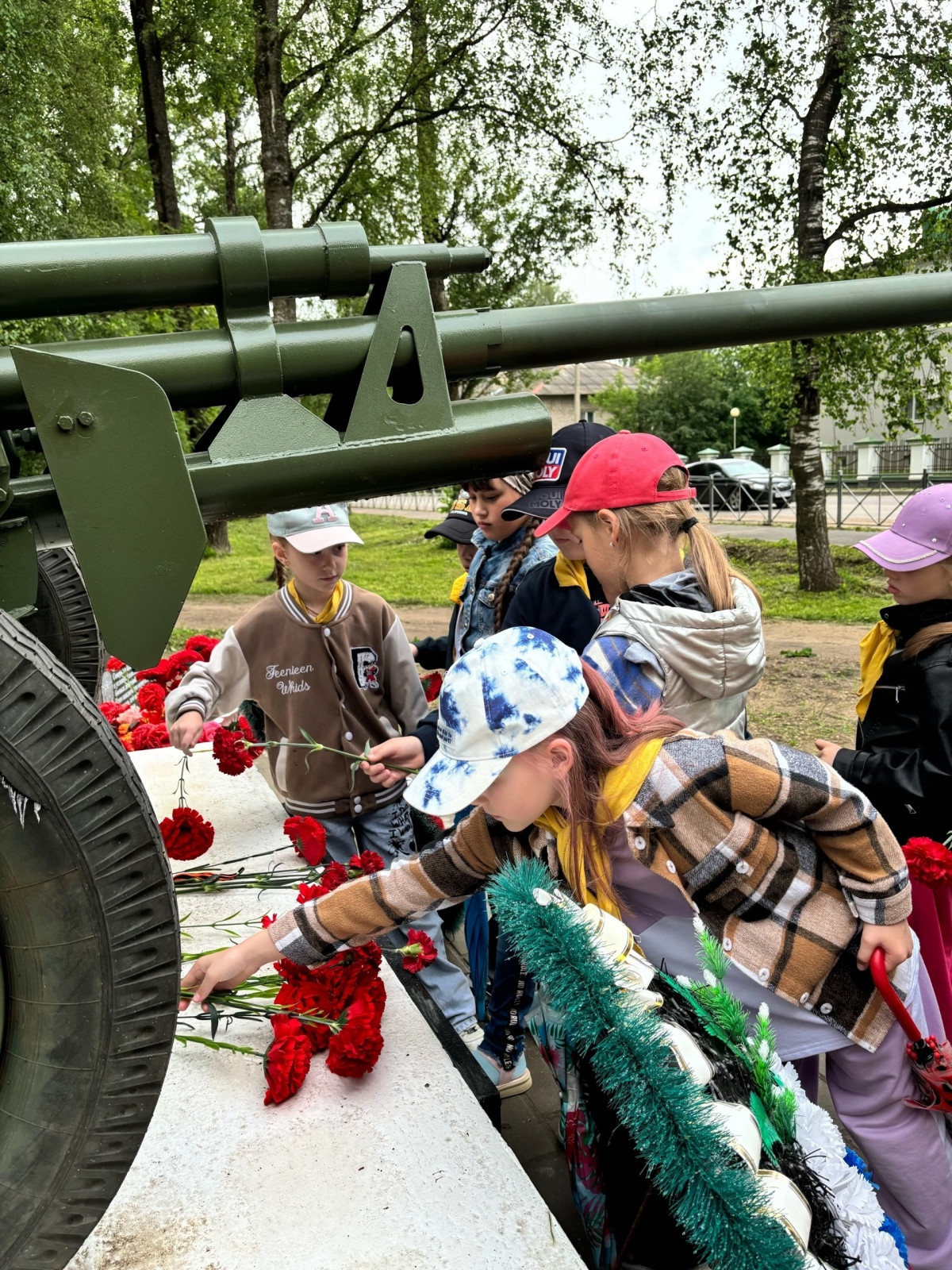 После просмотра фильма детям захотелось отдать дань уважения погибшив в Великой Отечественной войне. Было решило посетить памятник погибших в ВОв и возложить цветы.
